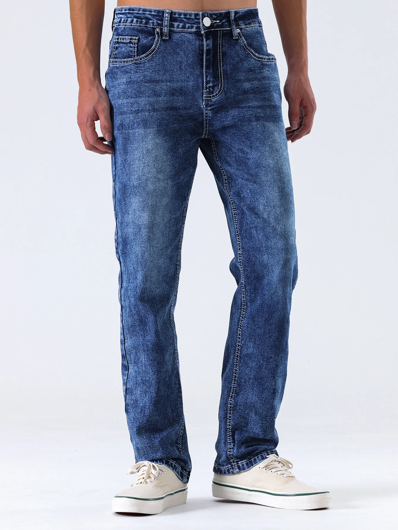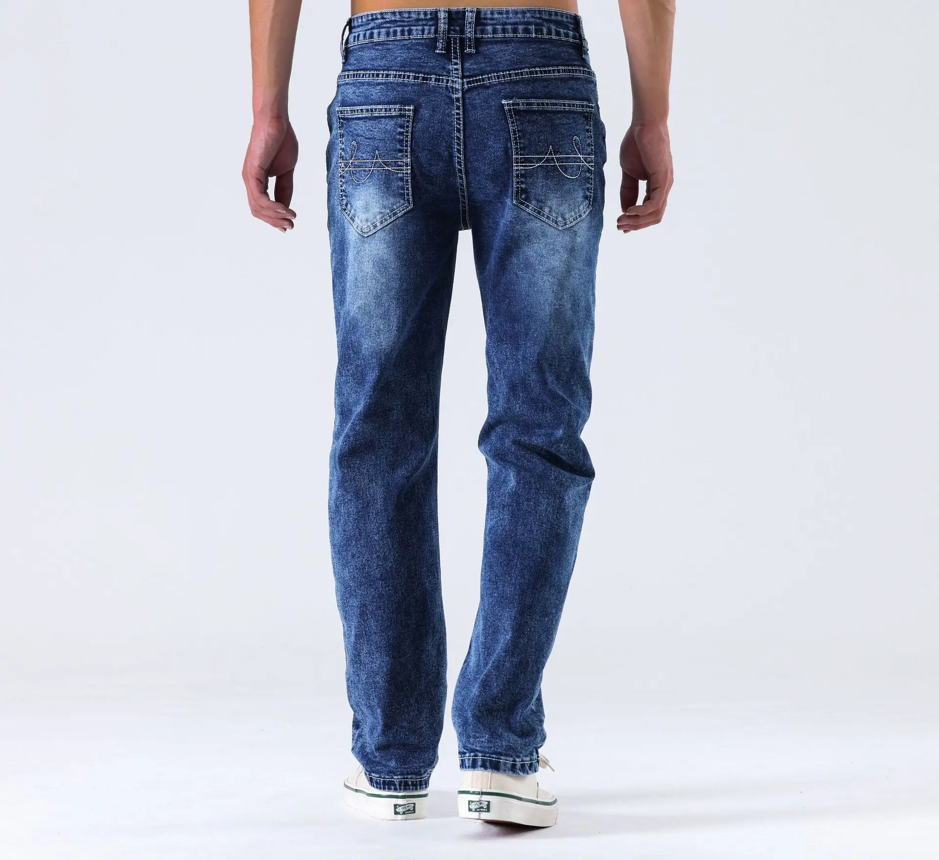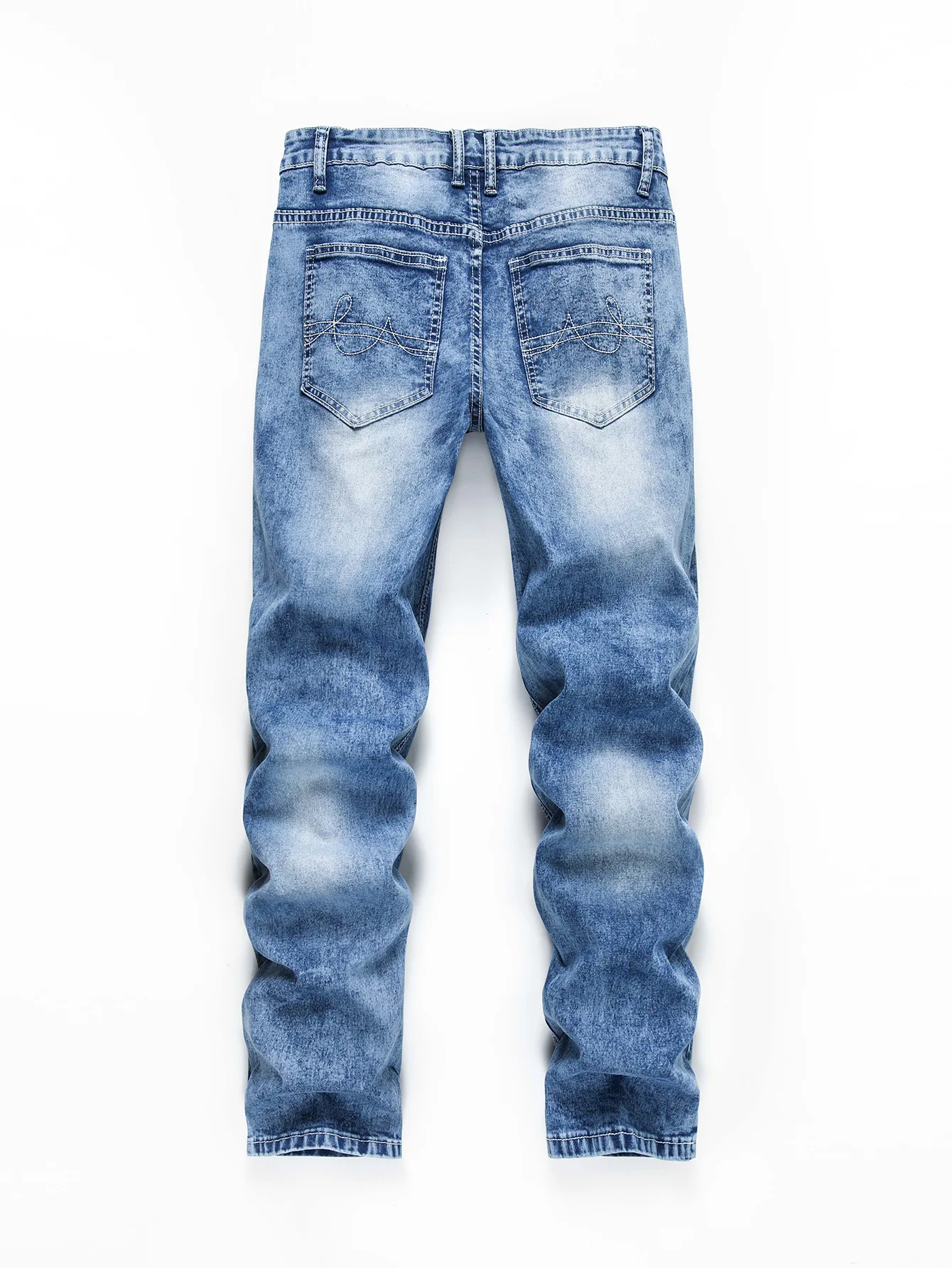 Straight Pants Men Jeans Mid Waist Strecth Washed Distressed Pockets 2025 Vintage Denims Streetwear Ankle Length Trousers