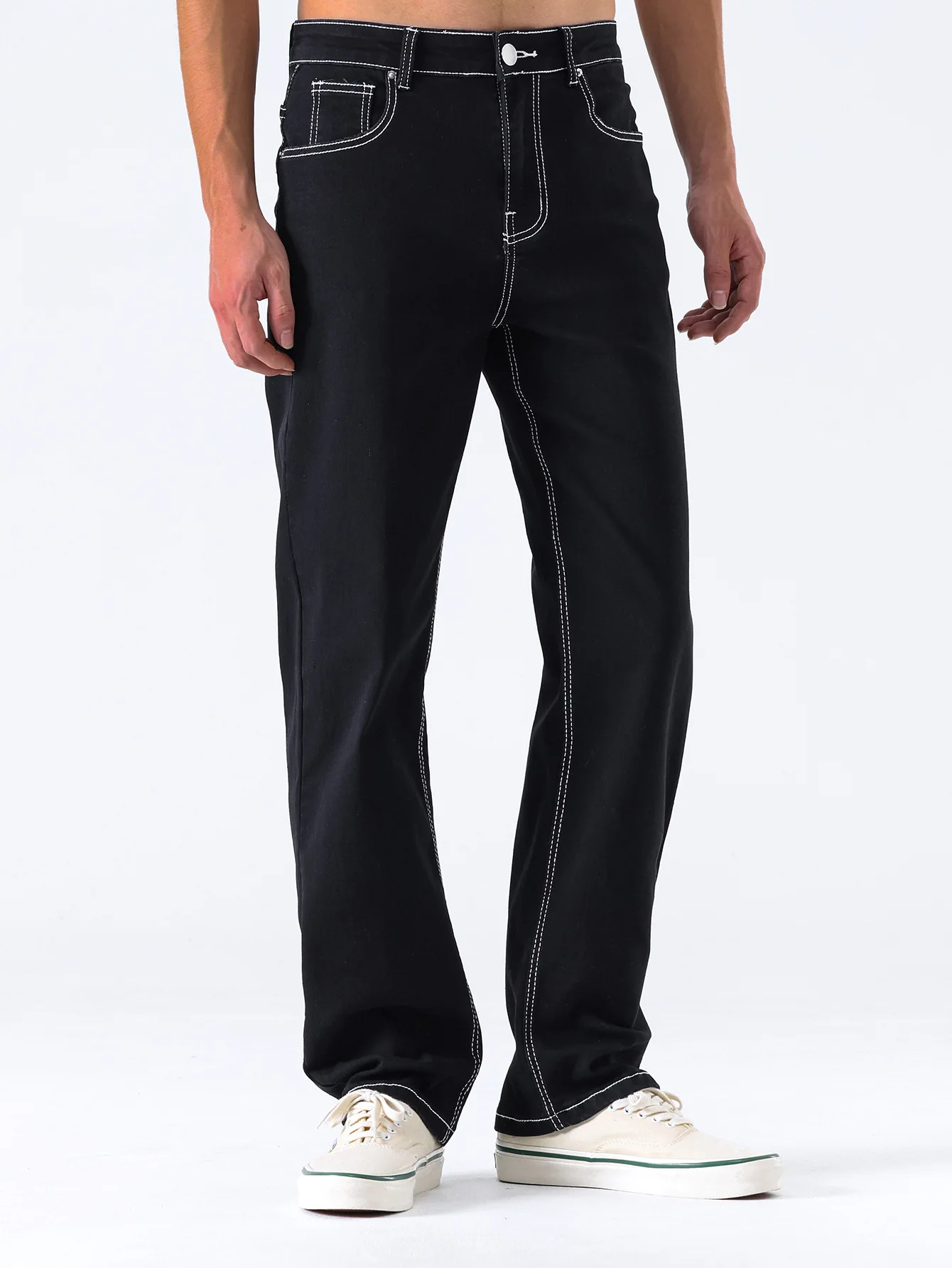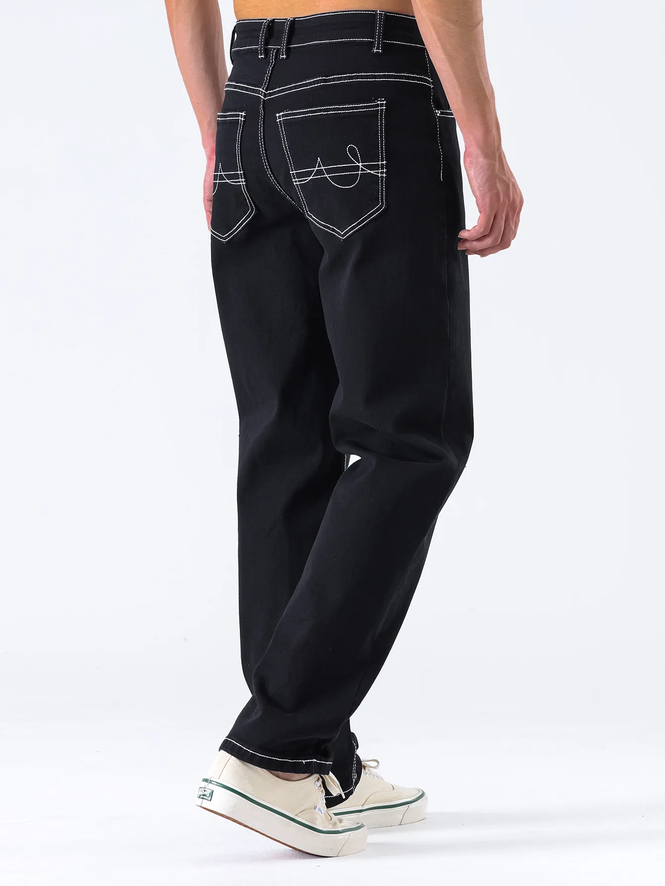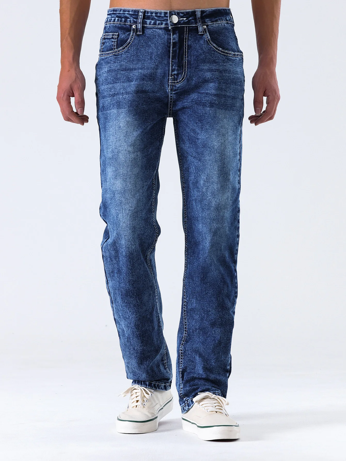 Straight Pants Men Jeans Mid Waist Strecth Washed Distressed Pockets 2025 Vintage Denims Streetwear Ankle Length Trousers