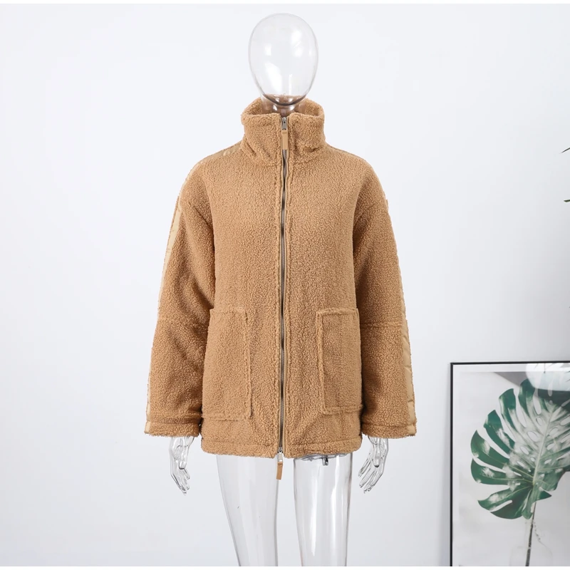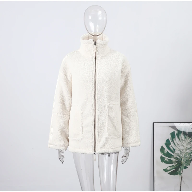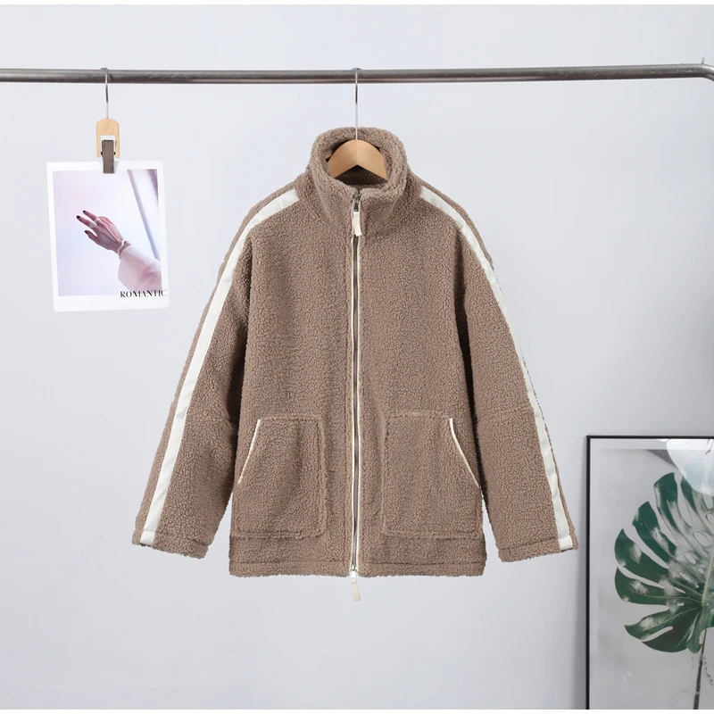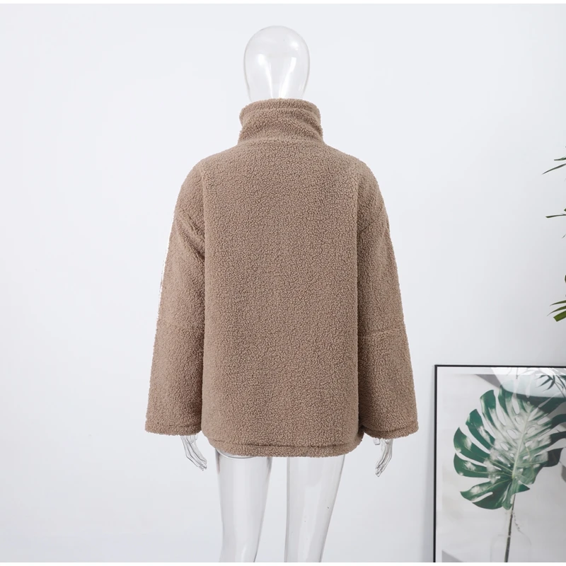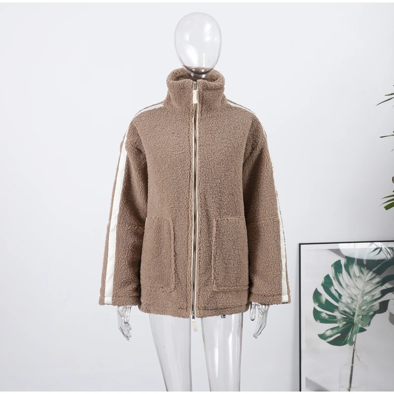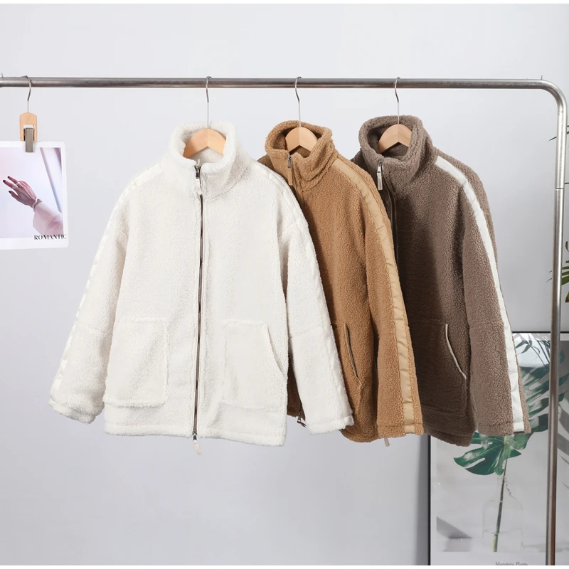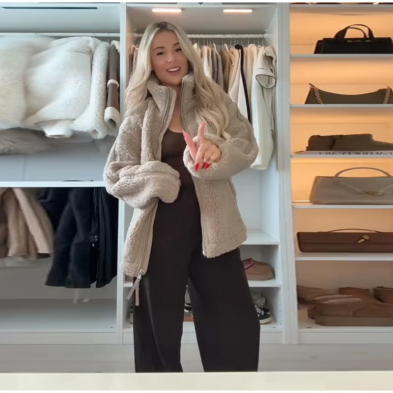 Street Zipper Loose Fur Jacket Woman Stand Collar Solid Color Long Sleeve Casual Coat Versatile Fashion Women's New Warm Jackets