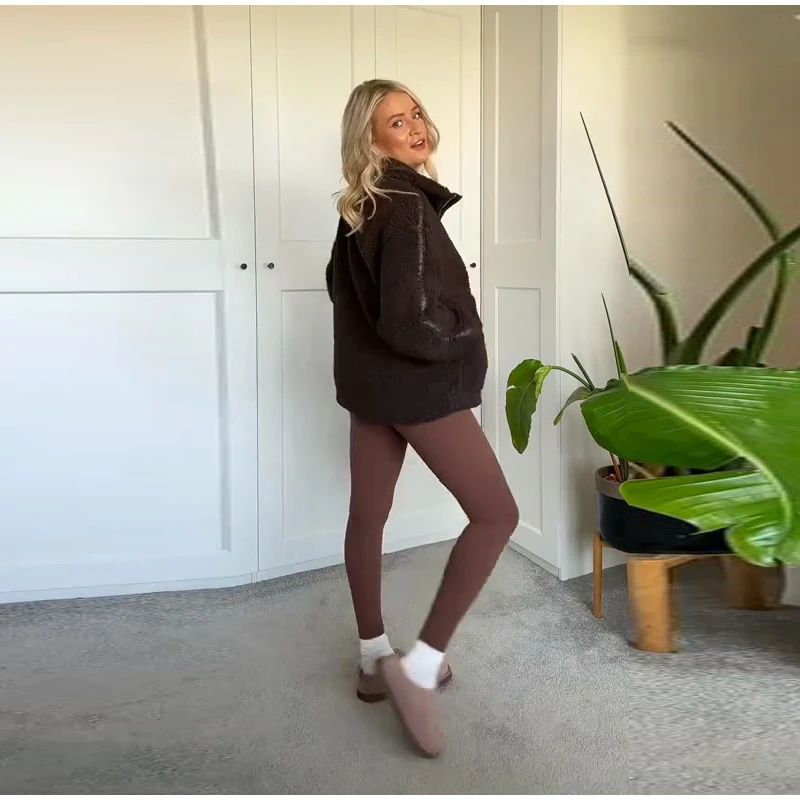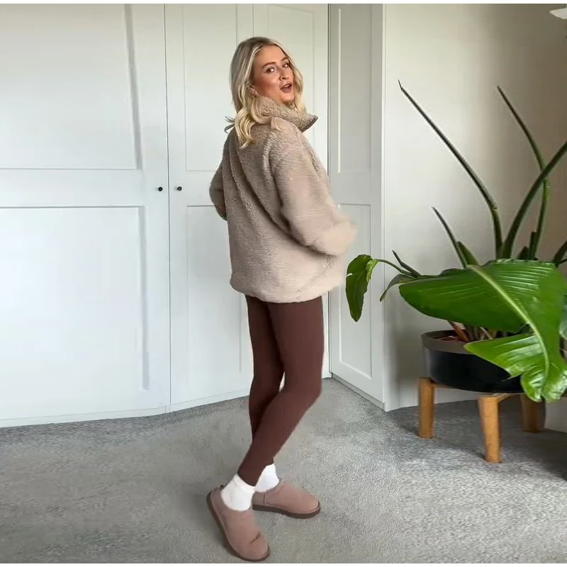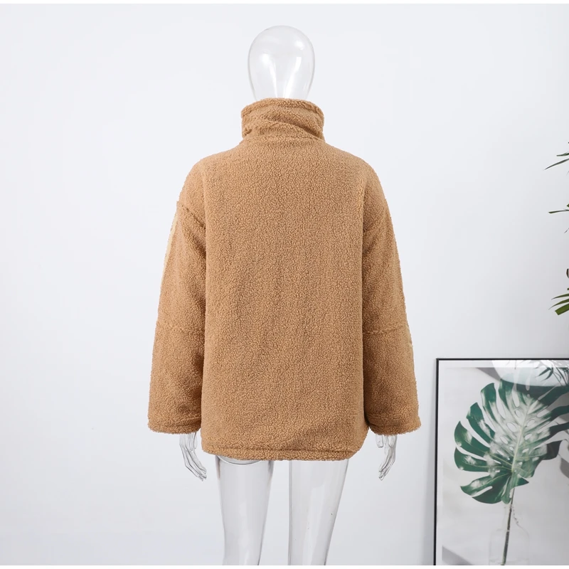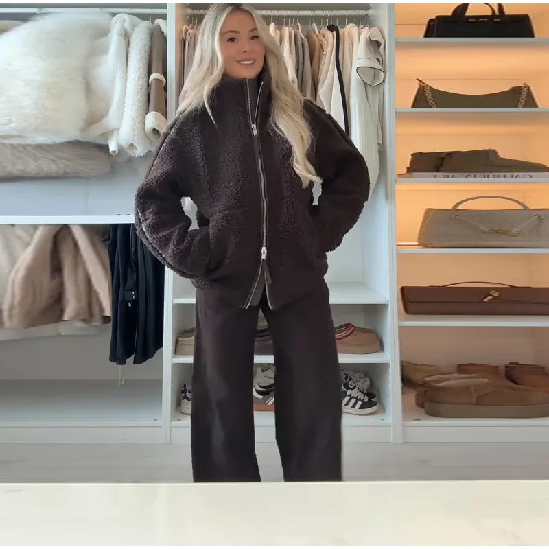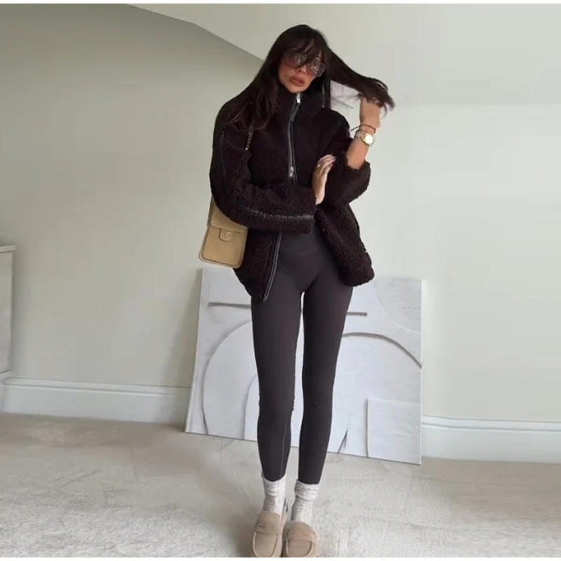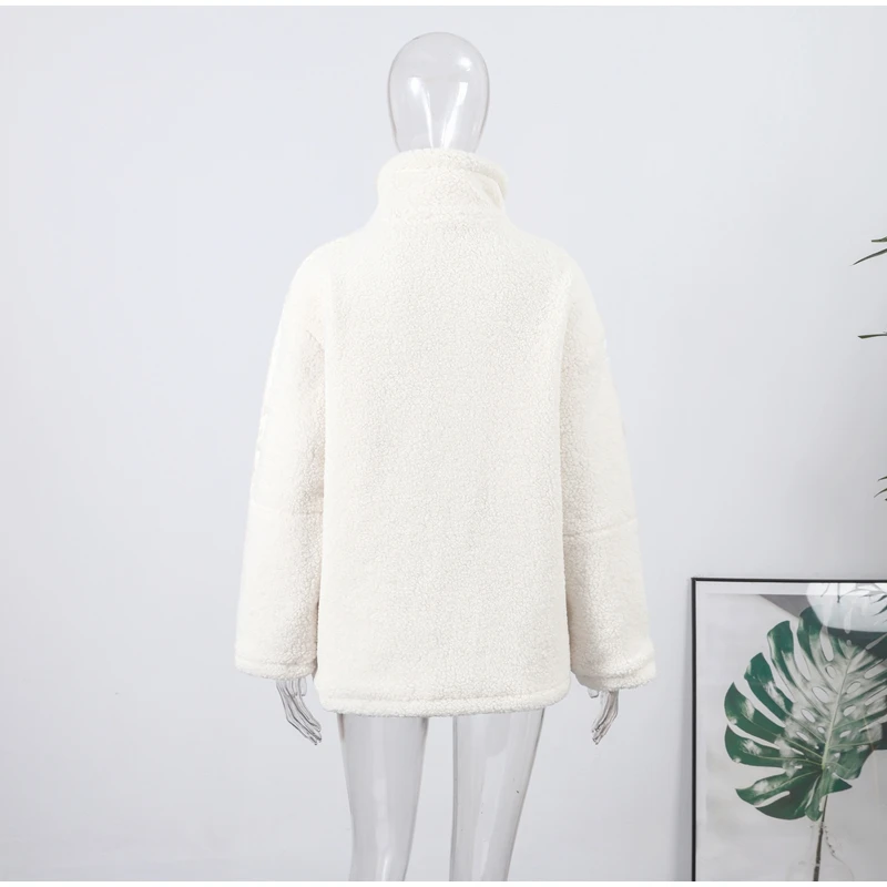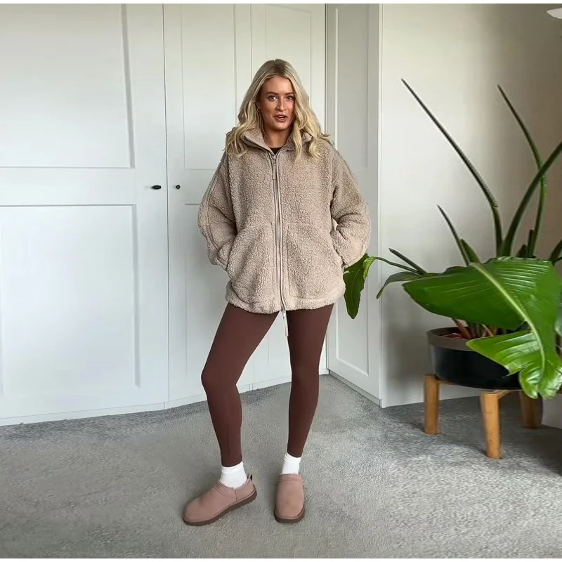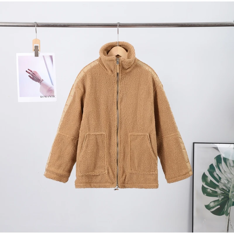 Street Zipper Loose Fur Jacket Woman Stand Collar Solid Color Long Sleeve Casual Coat Versatile Fashion Women's New Warm Jackets
