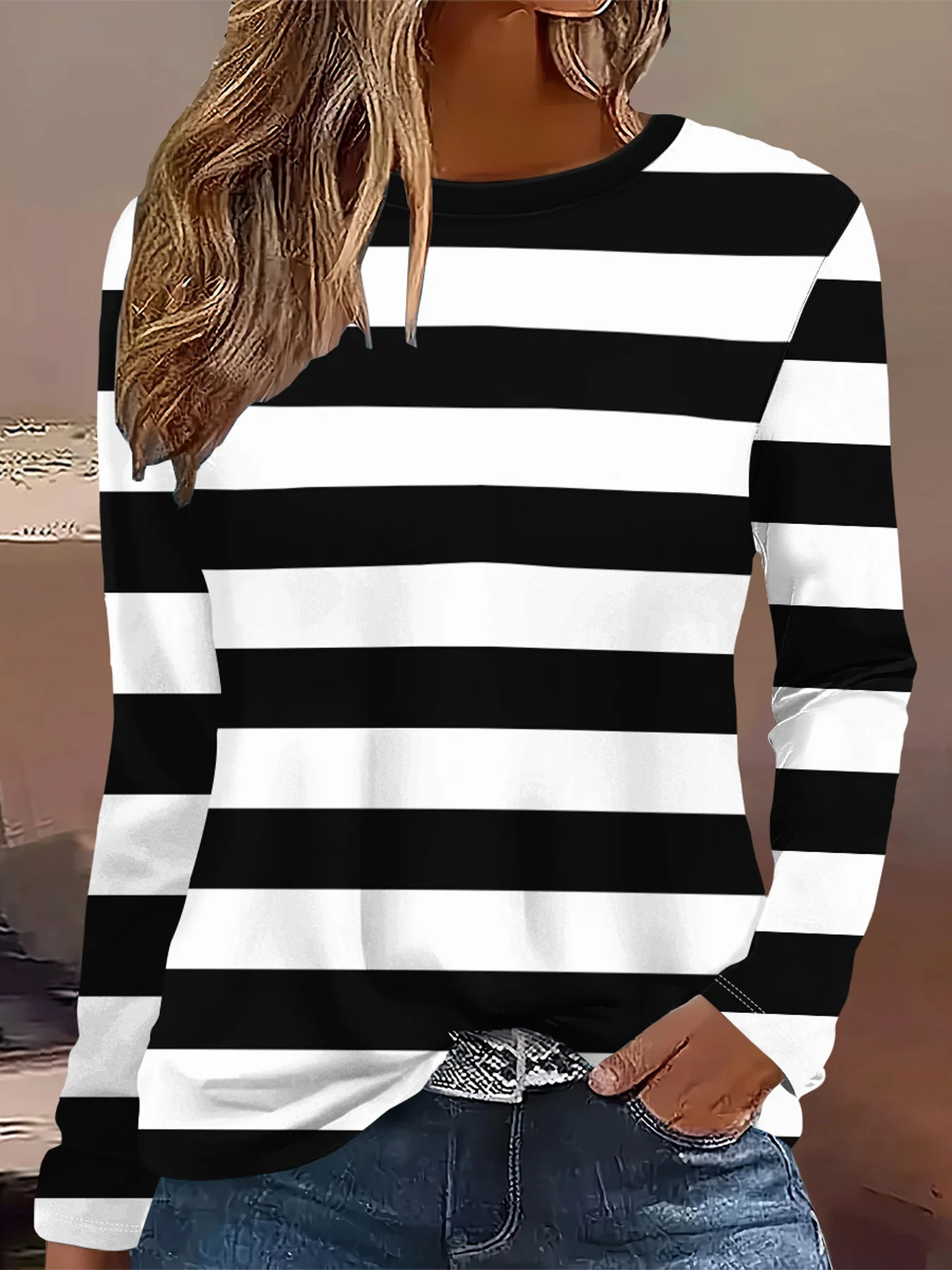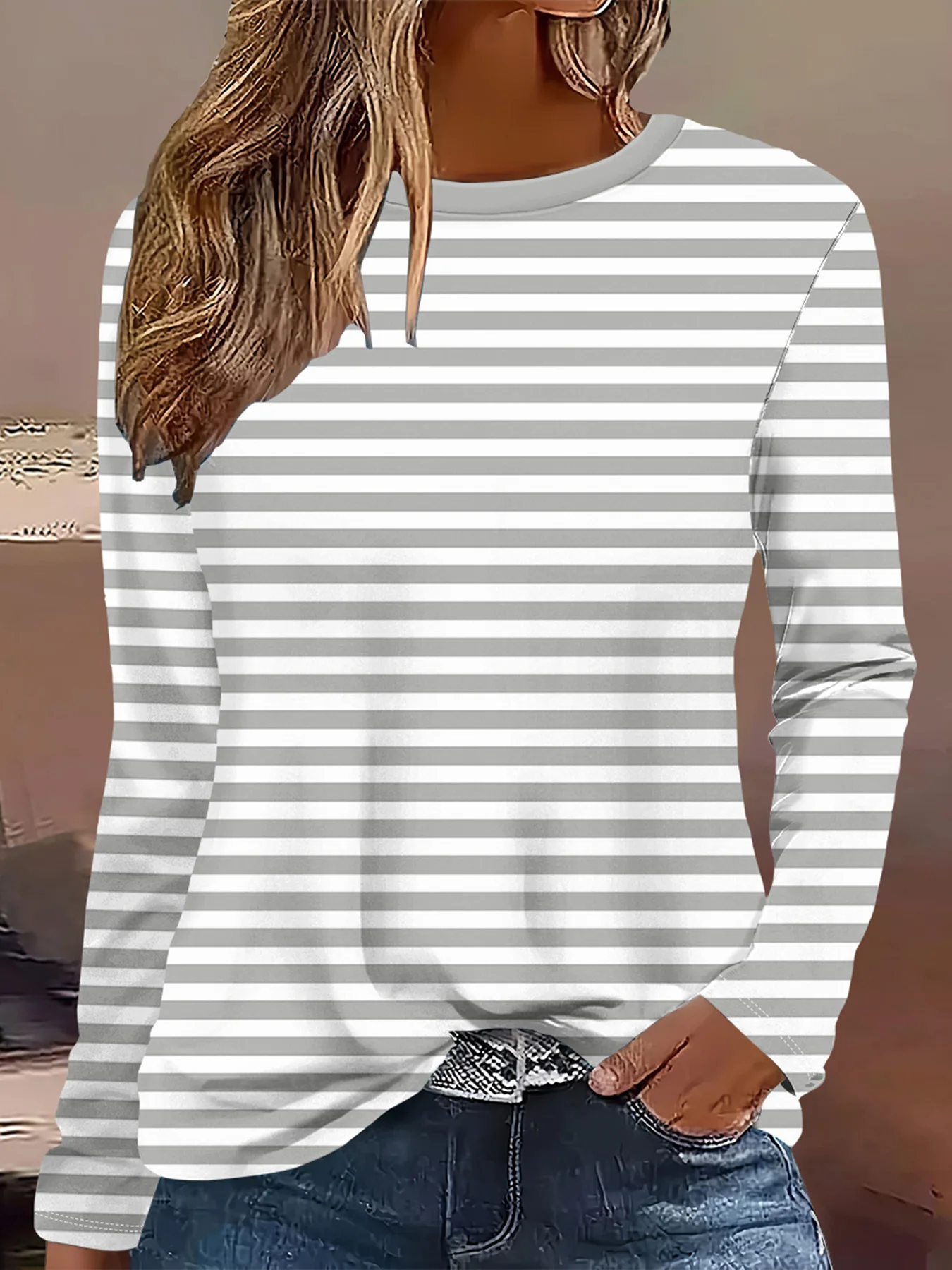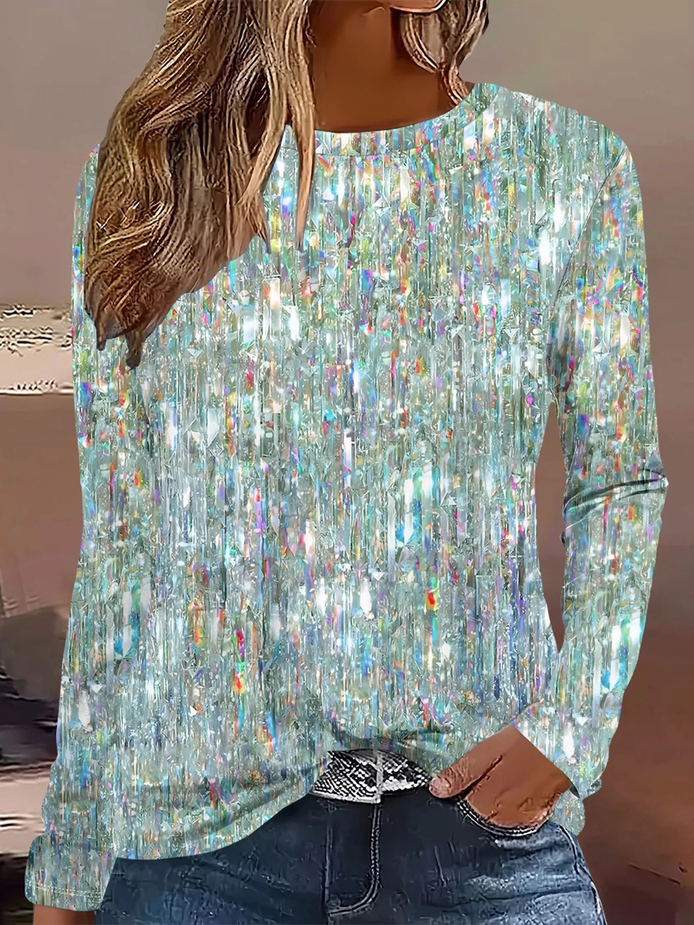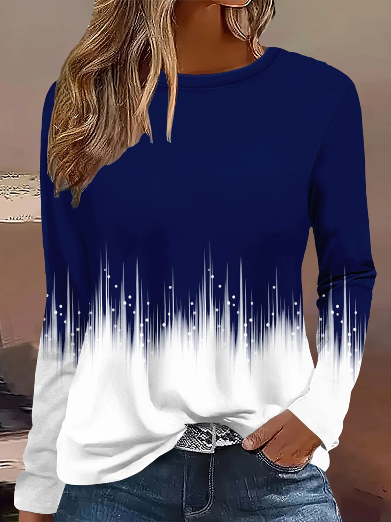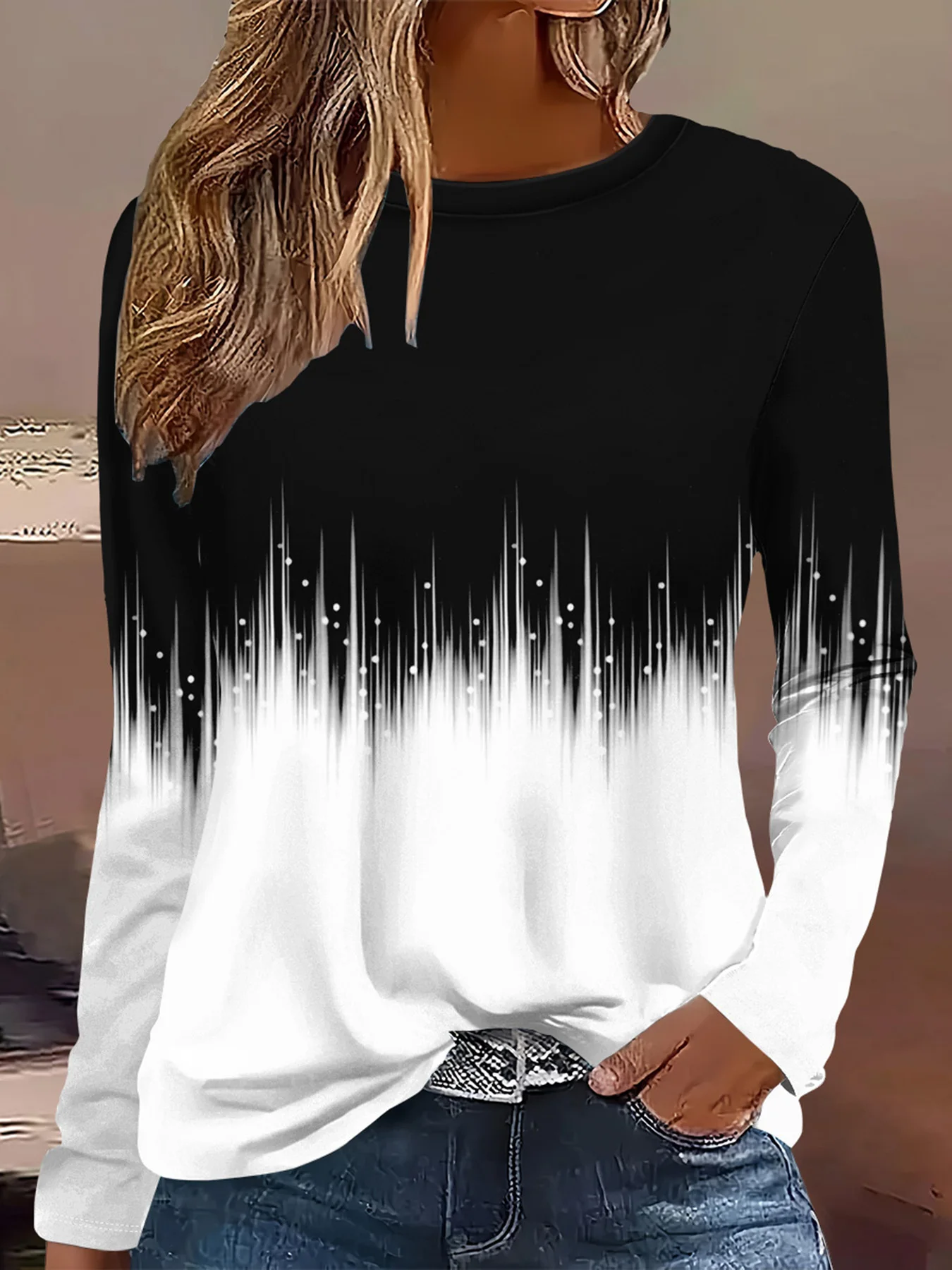 Summer new fashion 2025 women's casual long-sleeved printed T-shirt