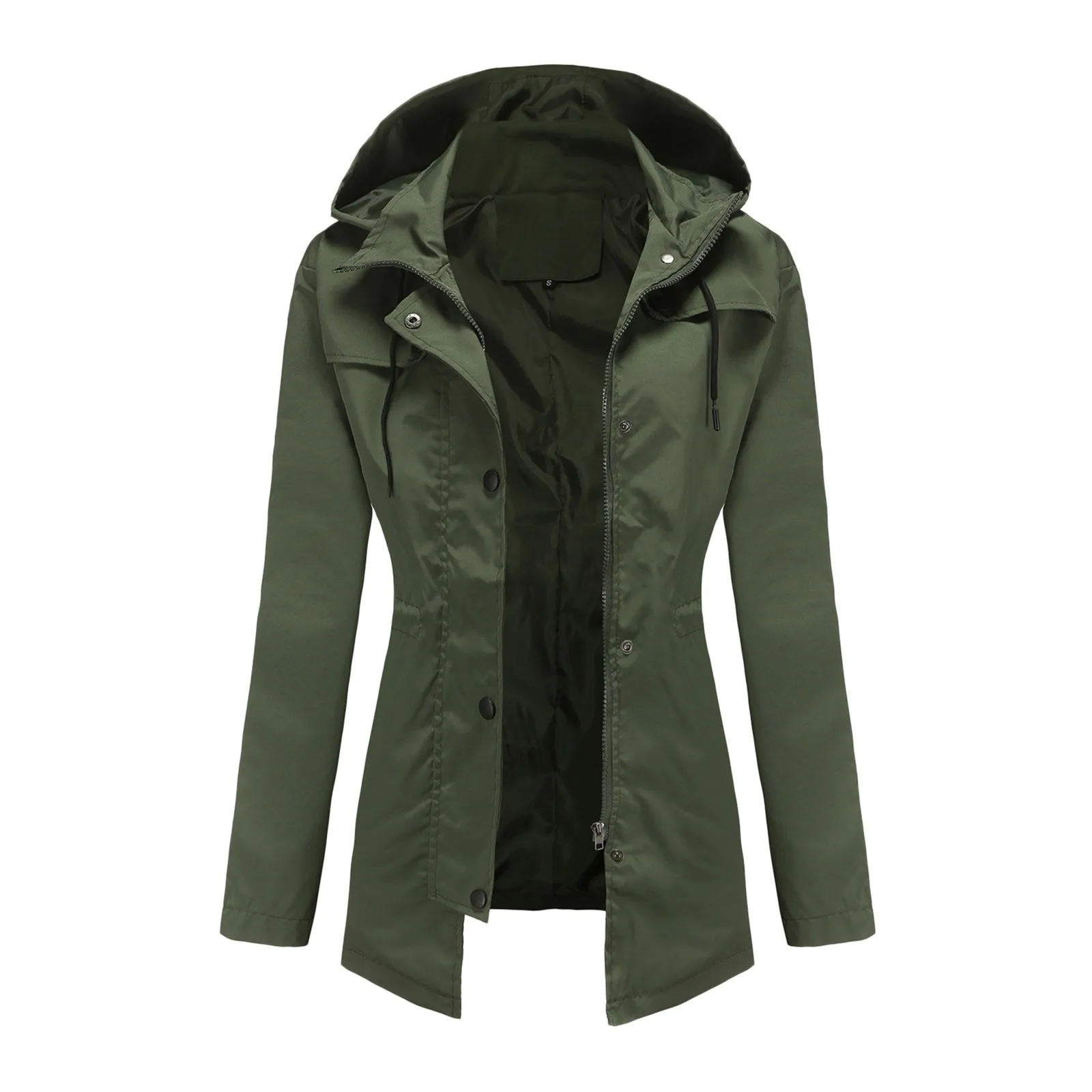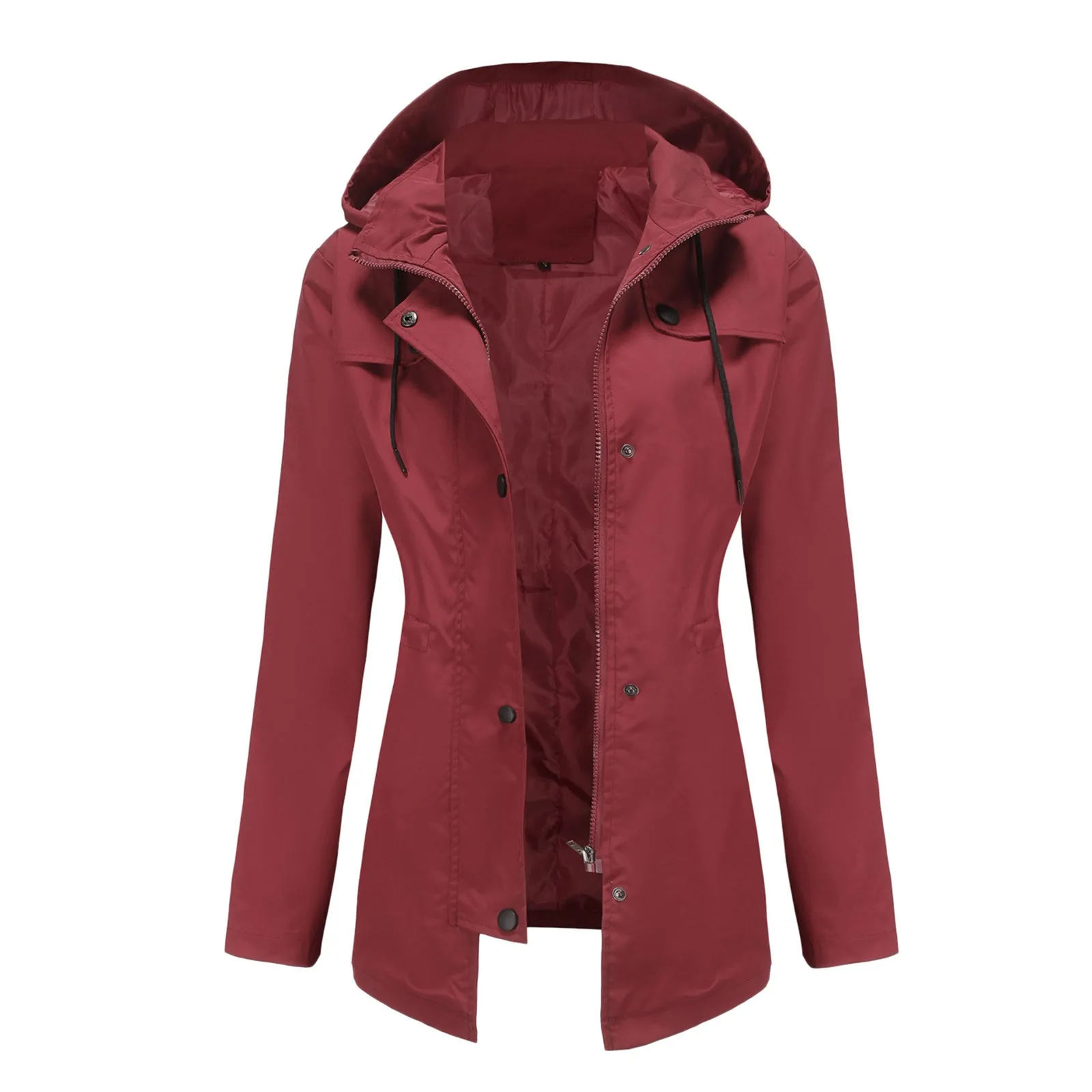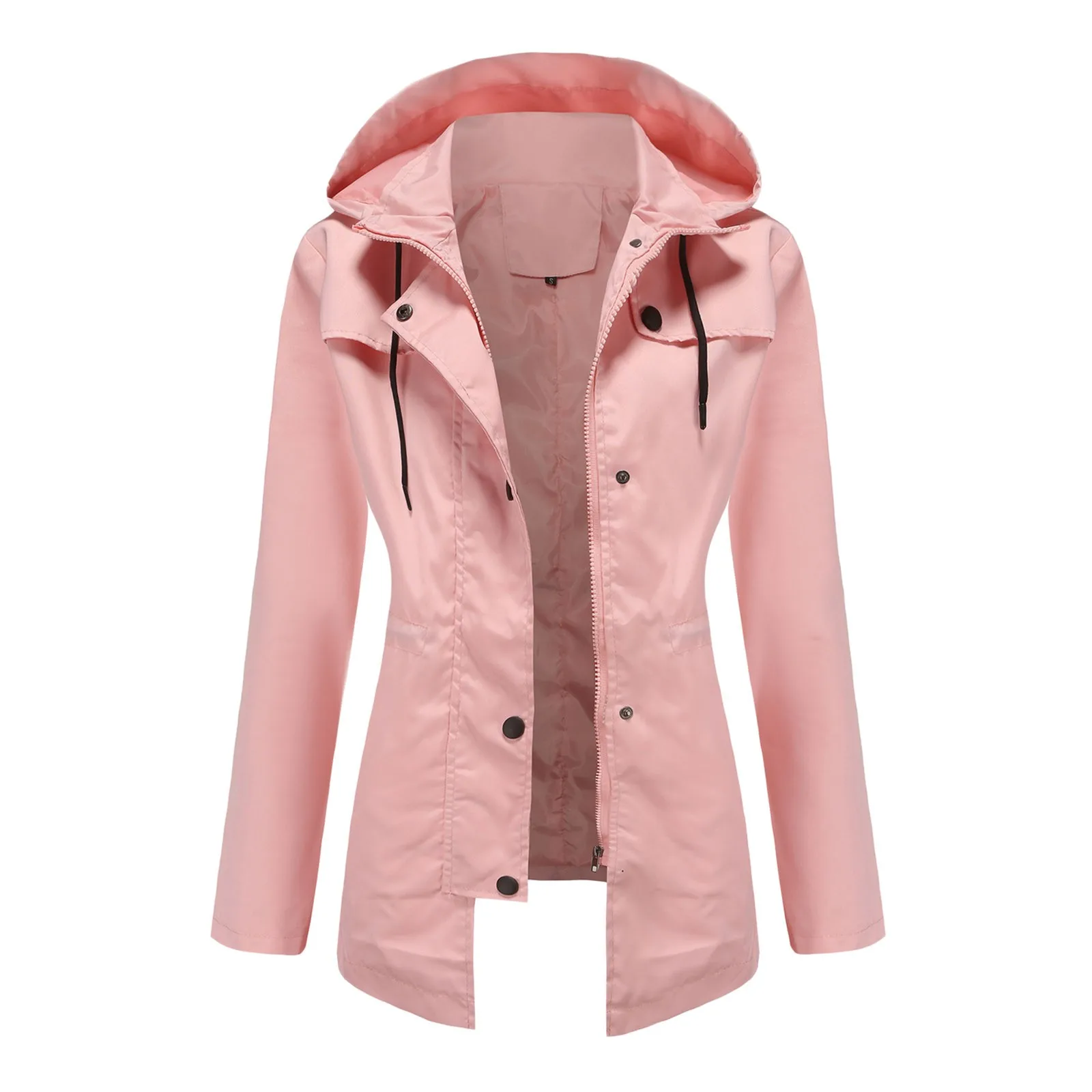 Trendy Button Front Women'S Coat Slim Drawstring Windbreaker Running Camping Women Softshell Water Proof Jacket Plus Size