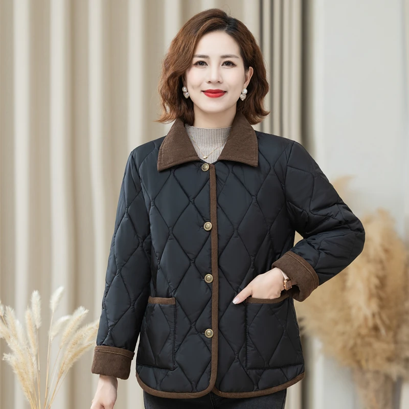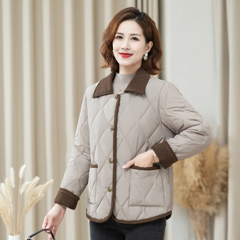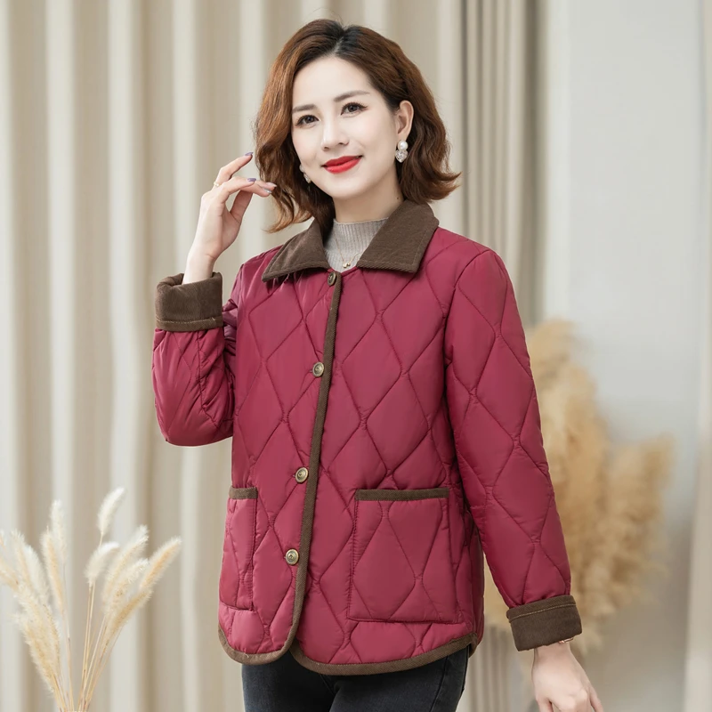 Trendy Women's patchwork Plaid Cotton Coatjacket Loose-fit Casual Lightweight Padded Jacket Autumn Winter New