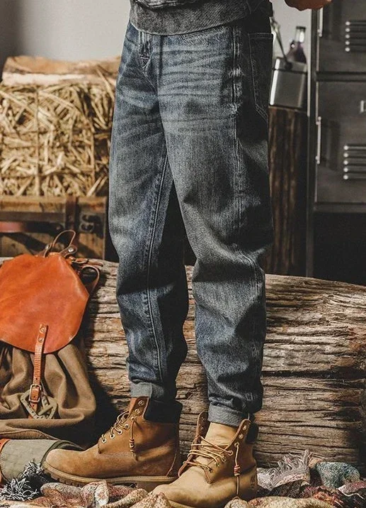 Trousers with Pockets Cargo Jeans for Men Large Size Motorcycle Male Cowboy Pants Denim 2025 Korean Autumn Loose Oversize Soft