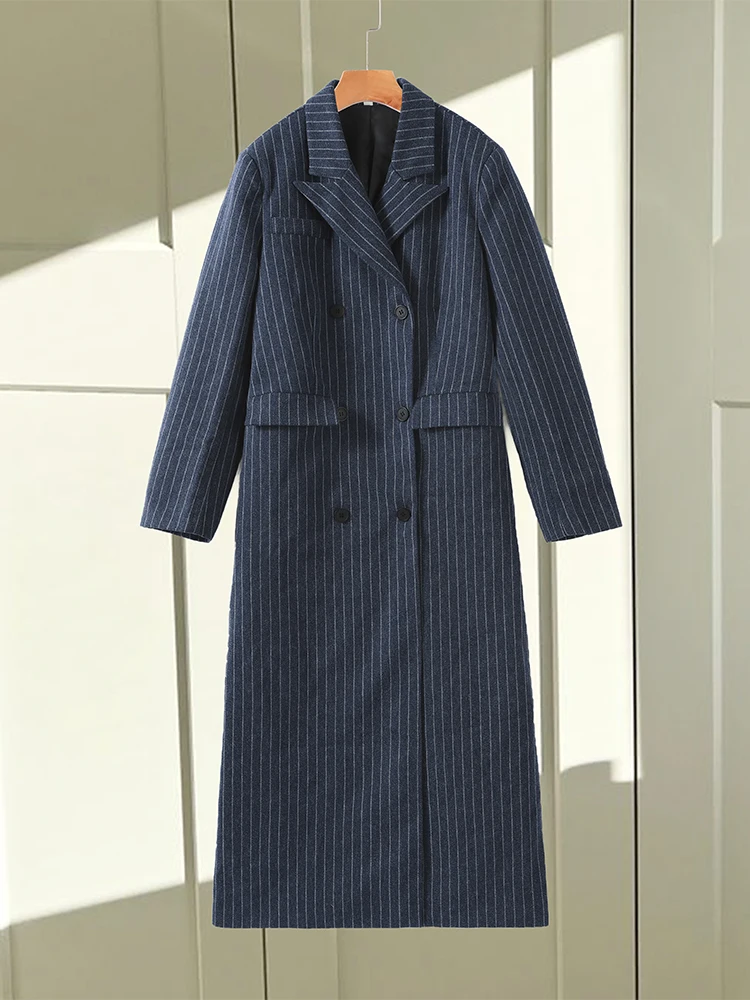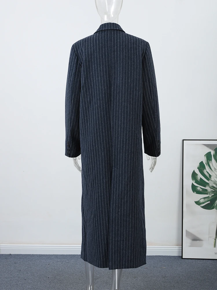 Whether you're heading to the office, going out for a casual day, or attending a more formal event, this pinstripe maxi coat adapts effortlessly. Its versatile design makes it a go - to piece that you'll reach for time and again.