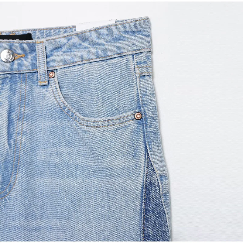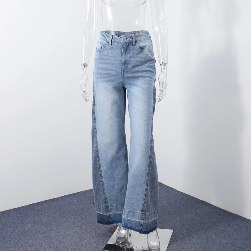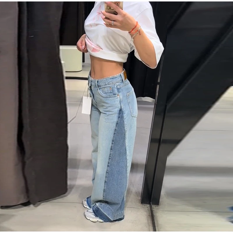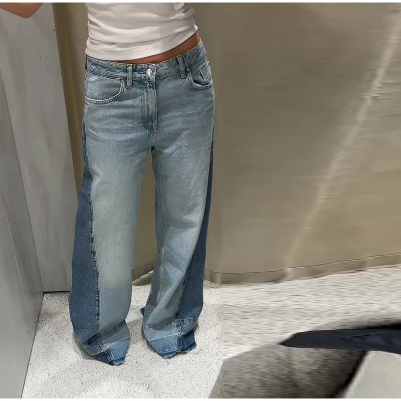 Perfect for those who love to stay ahead of the fashion curve, these patchwork wide - leg jeans are a hot trend in contemporary fashion. They're ideal for making a statement at fashion - forward events, music festivals, or simply adding a touch of individuality to your everyday style.