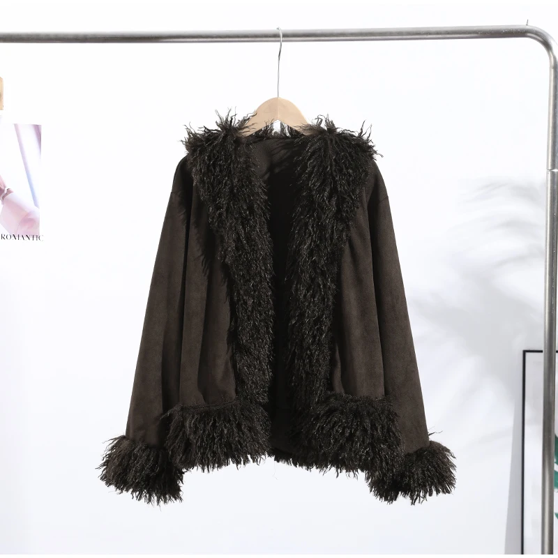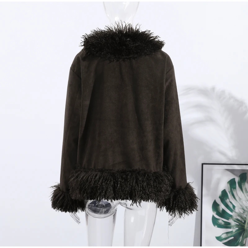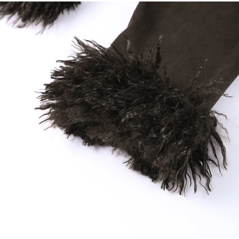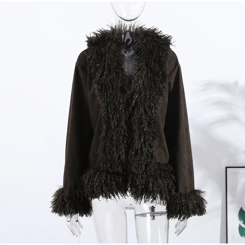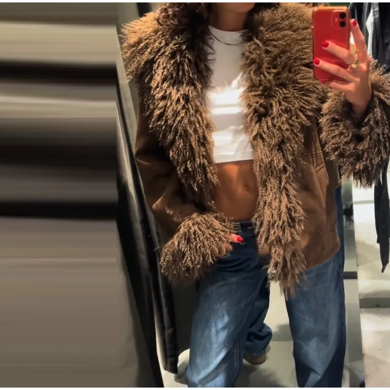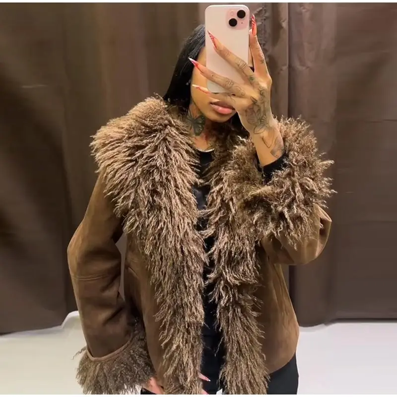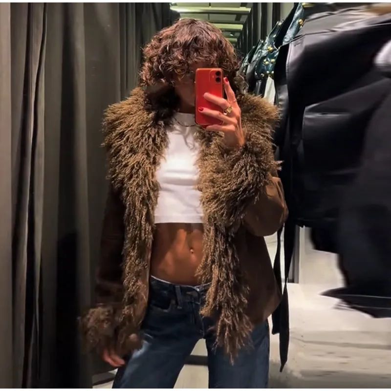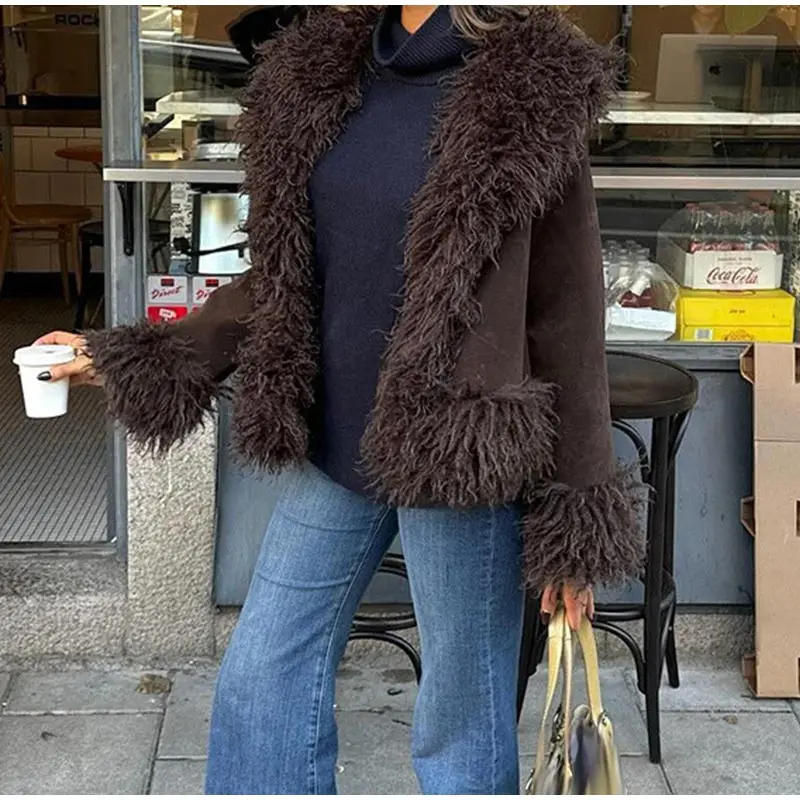 Vintage Solid Faux Fur Jackets Women Casual Plush Lapel Open Coats Female Autumn Winter Trendy Elegant Warm High Street Outwear