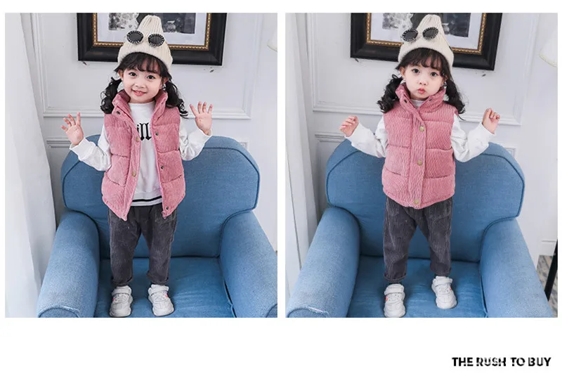 Winter Baby Kids Thick Vests Baby Girls Outerwear Plus Velvet Sleeveless Coats Boys Jackets Warm Coats Toddler Children Vest