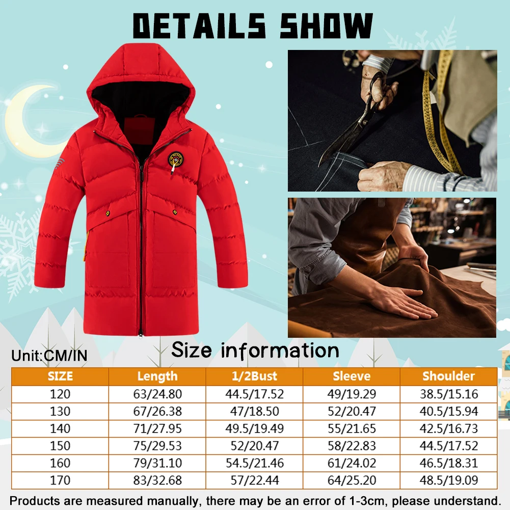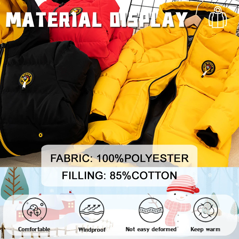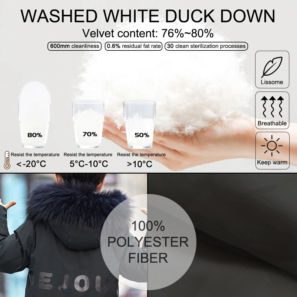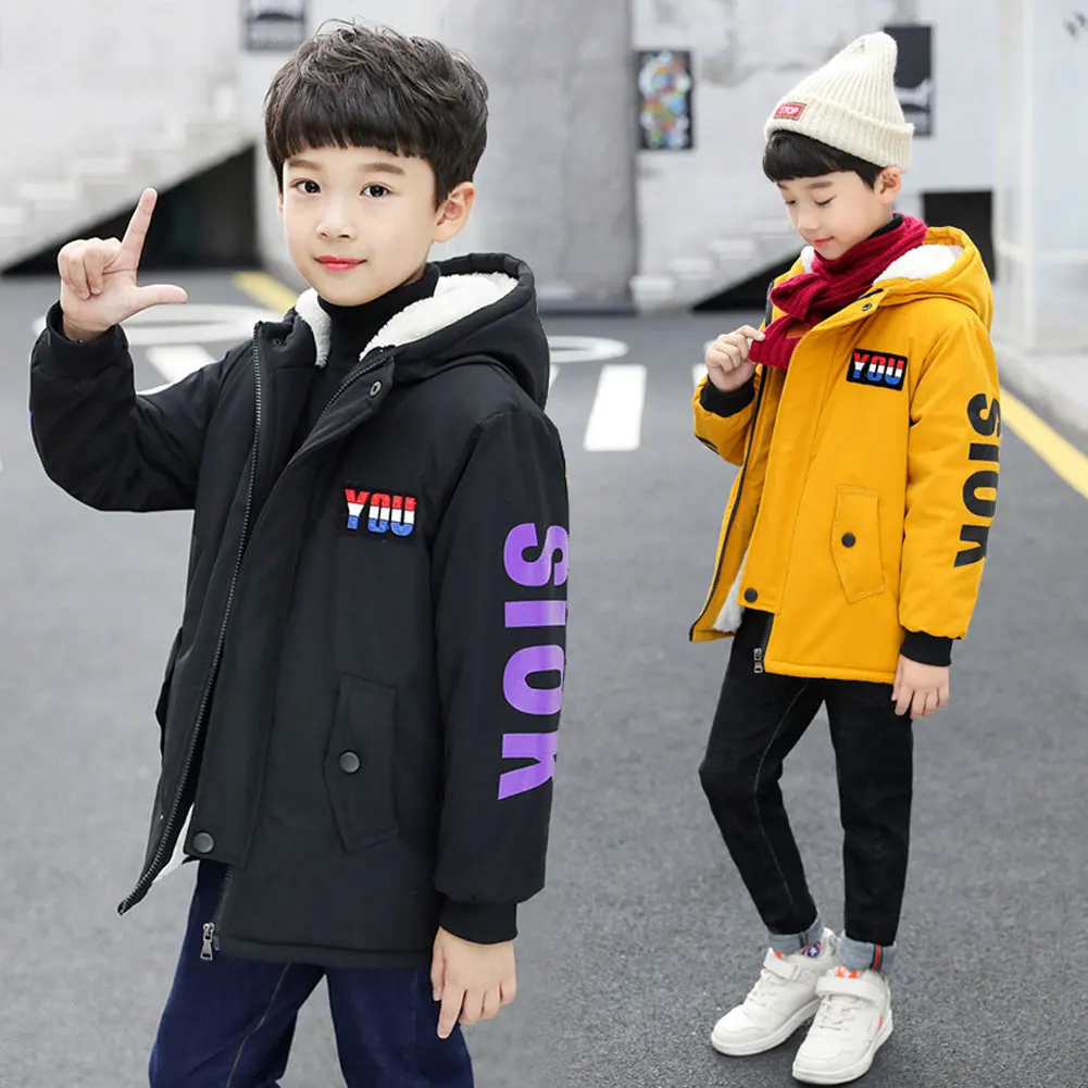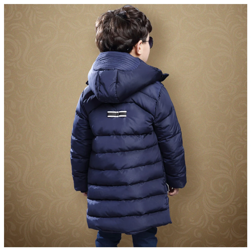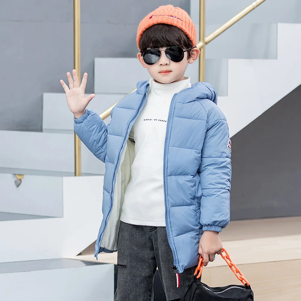 Winter Children's Down Jacket Boys Girls Cotton Padded Coat with Full Zipper Warm Long Fur Hood Windproof Kids Overcoat Parka