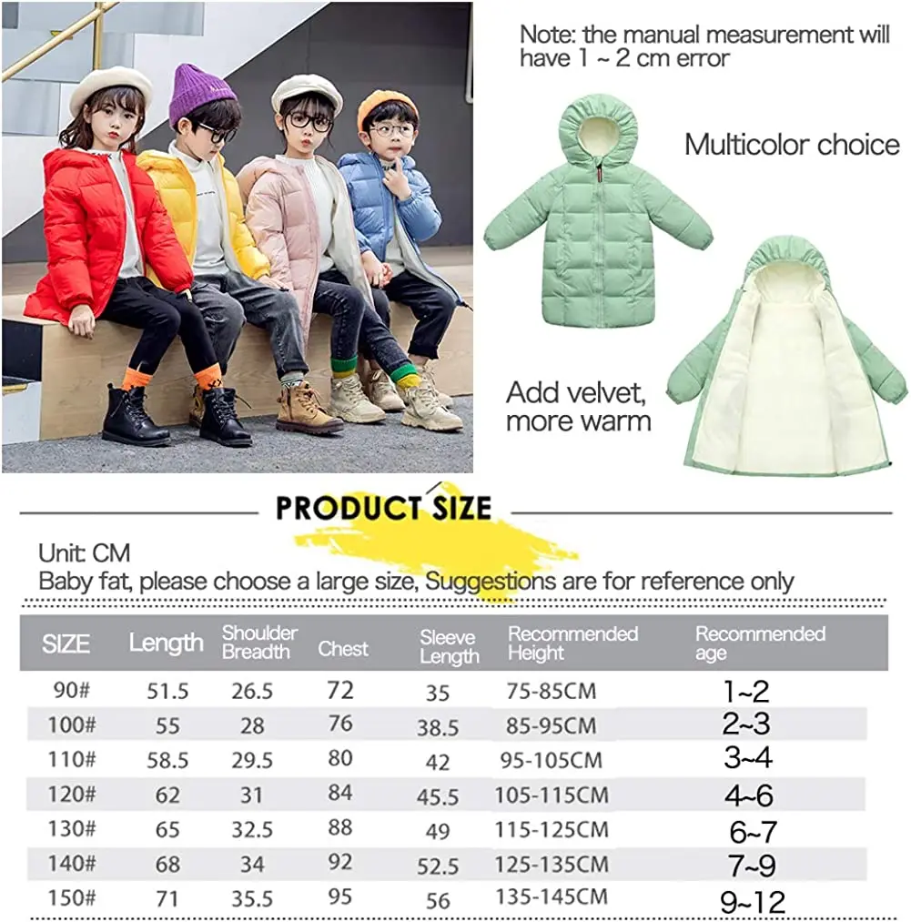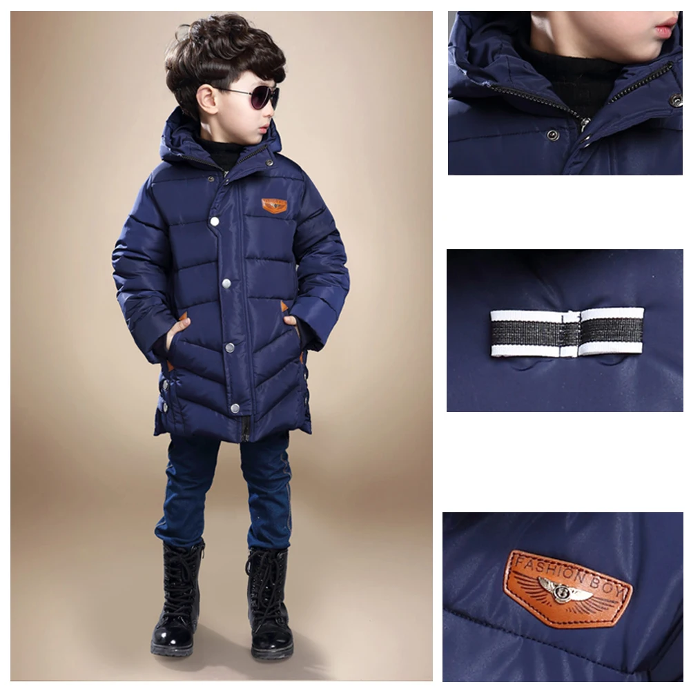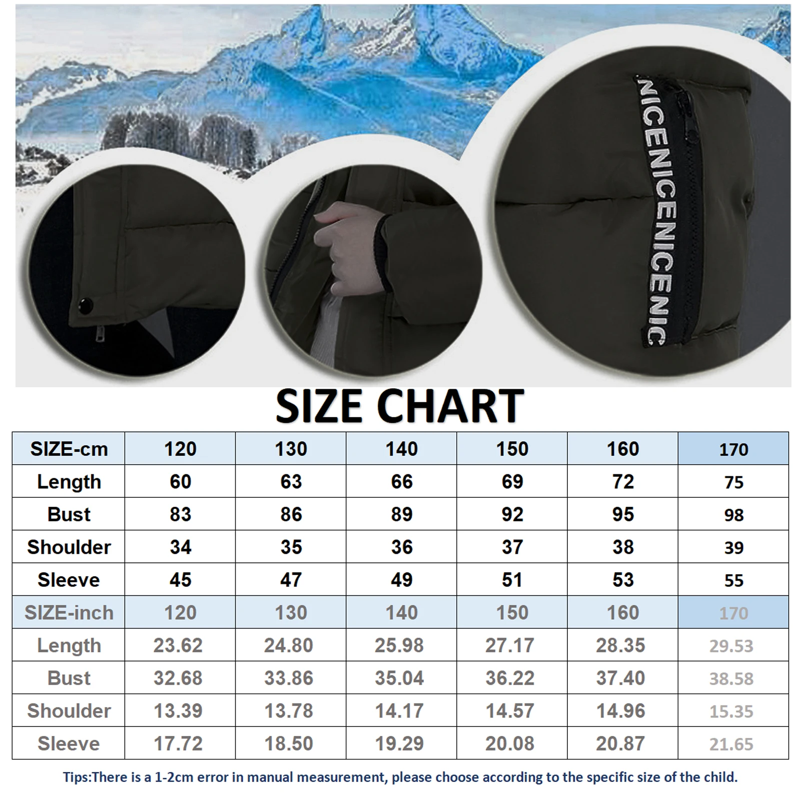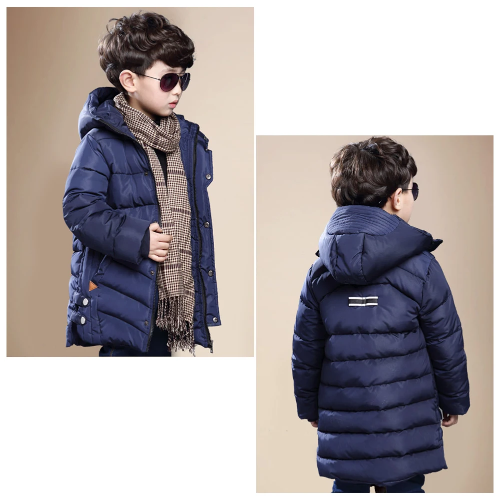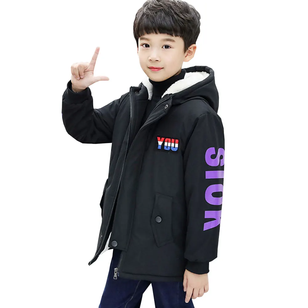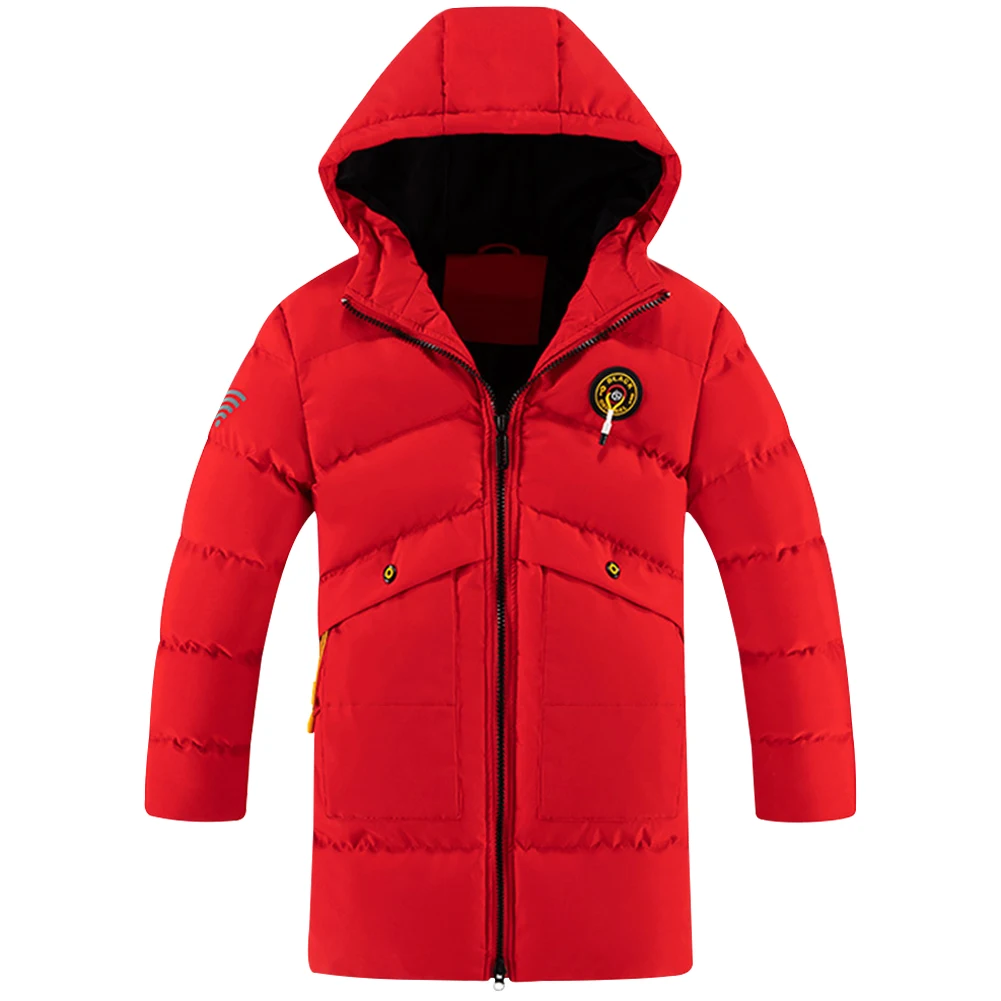 Winter Children's Down Jacket Boys Girls Cotton Padded Coat with Full Zipper Warm Long Fur Hood Windproof Kids Overcoat Parka