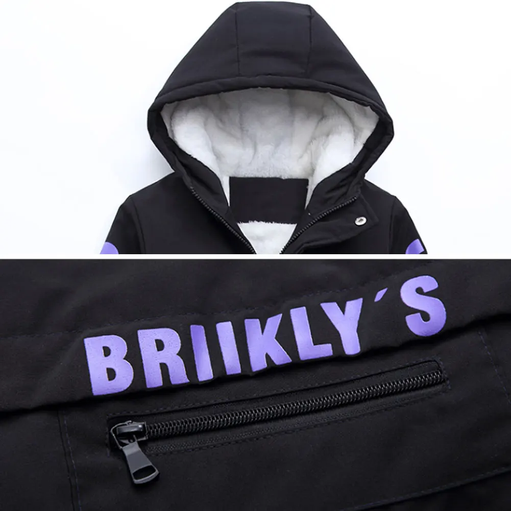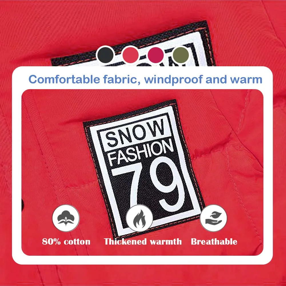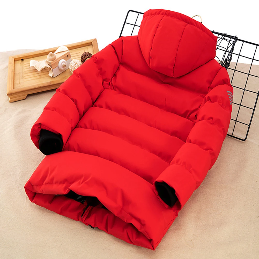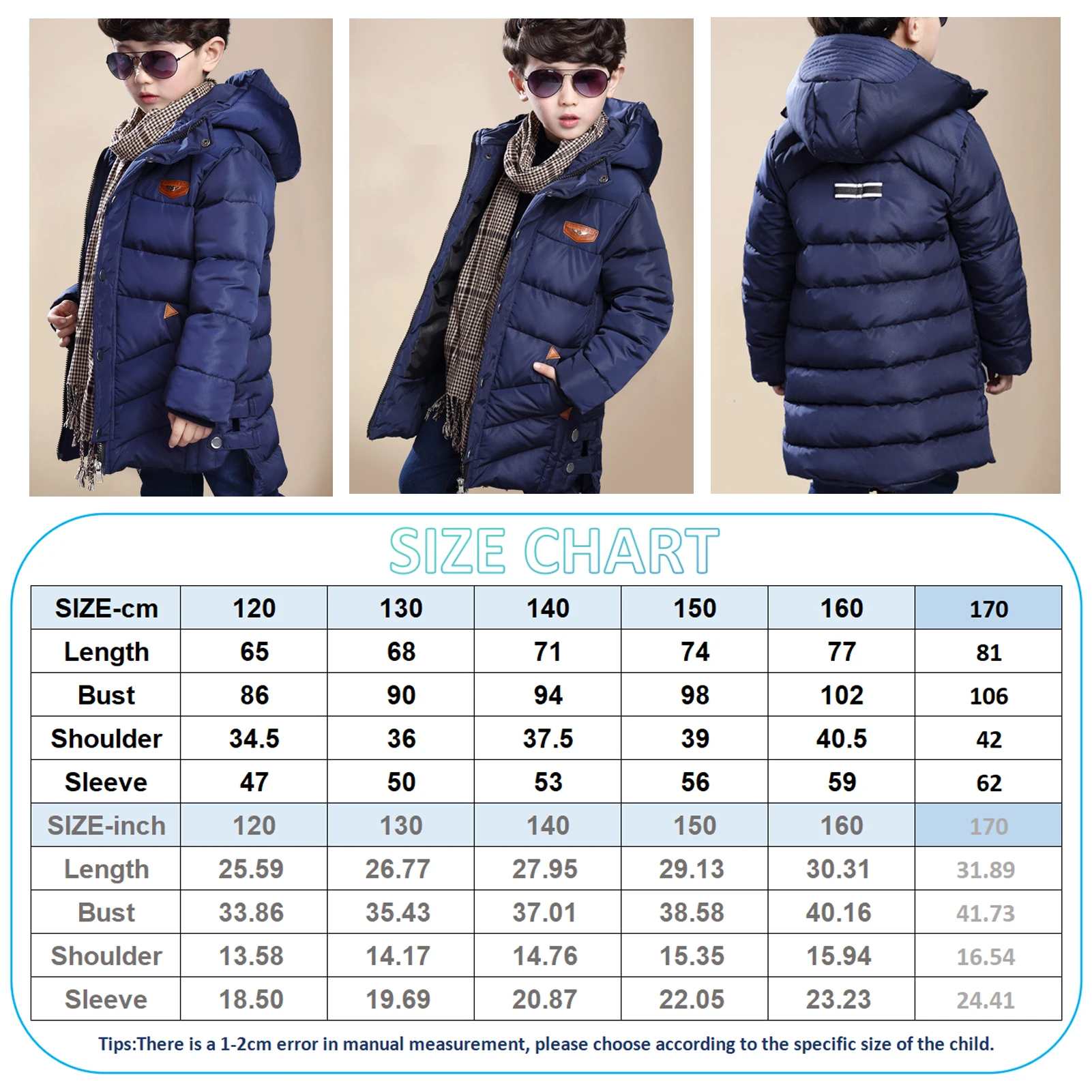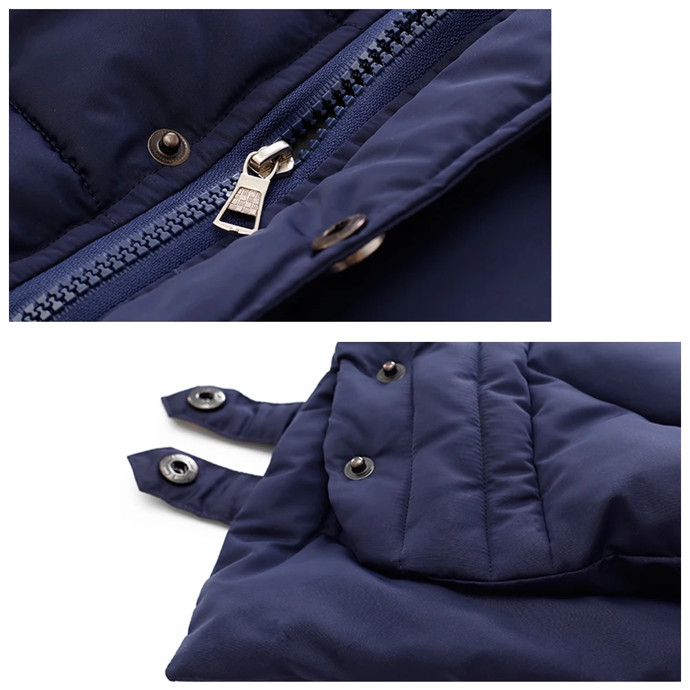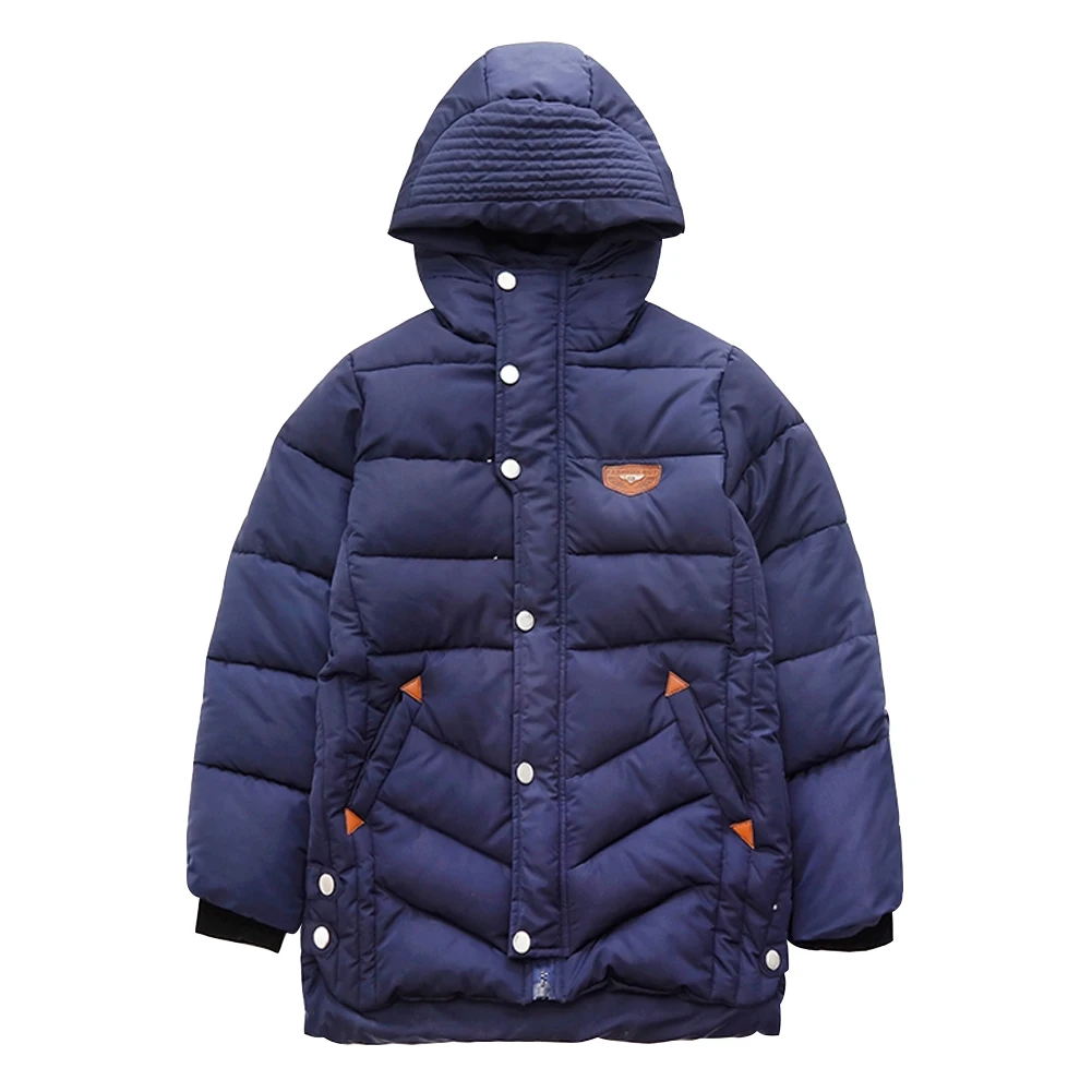 Winter Children's Down Jacket Boys Girls Cotton Padded Coat with Full Zipper Warm Long Fur Hood Windproof Kids Overcoat Parka
