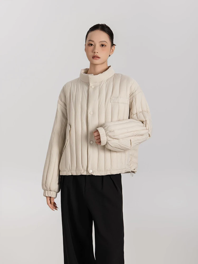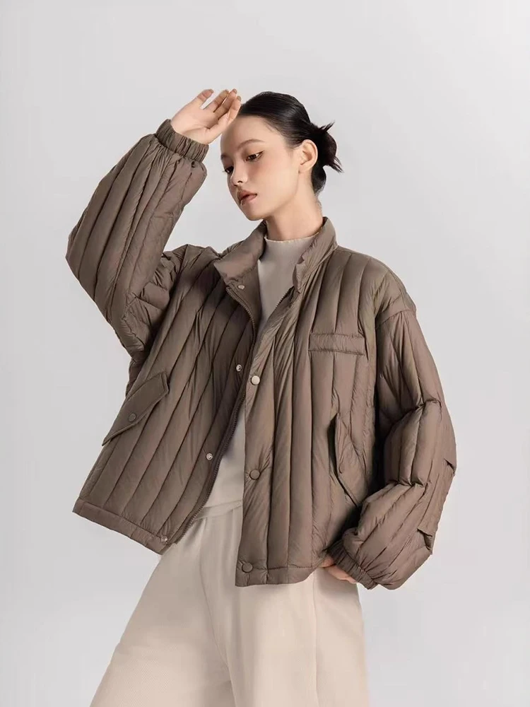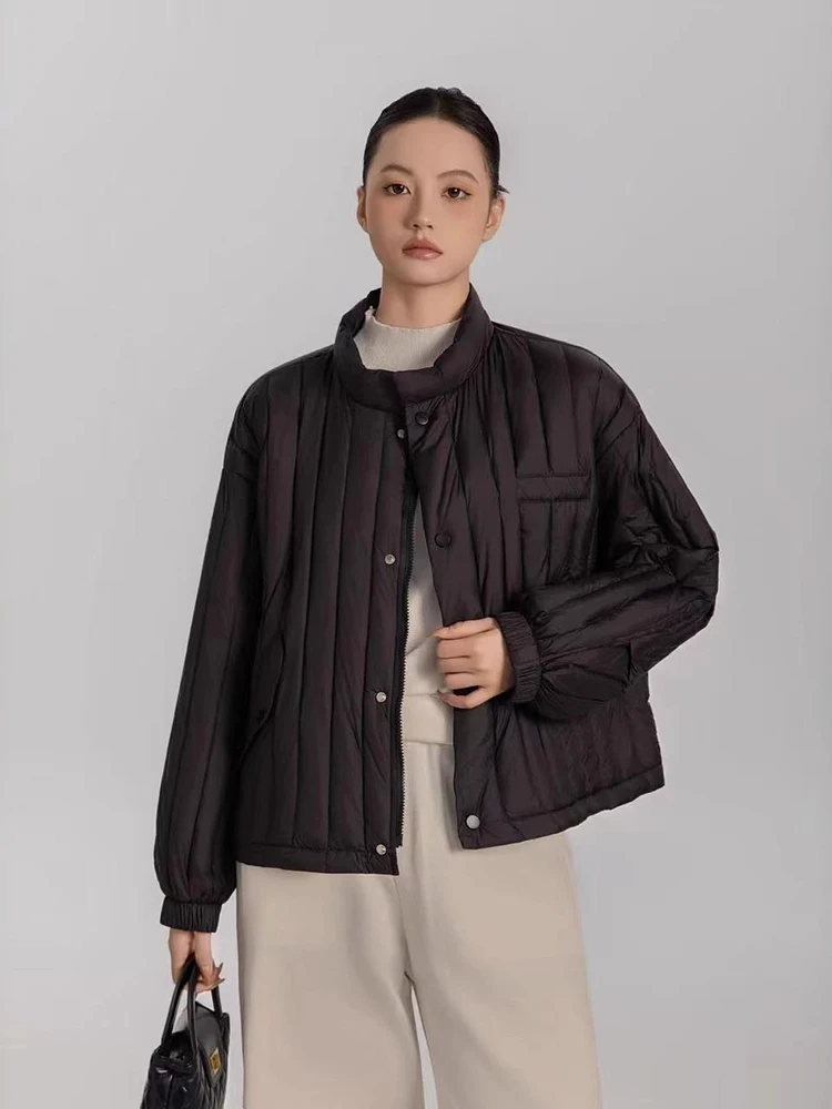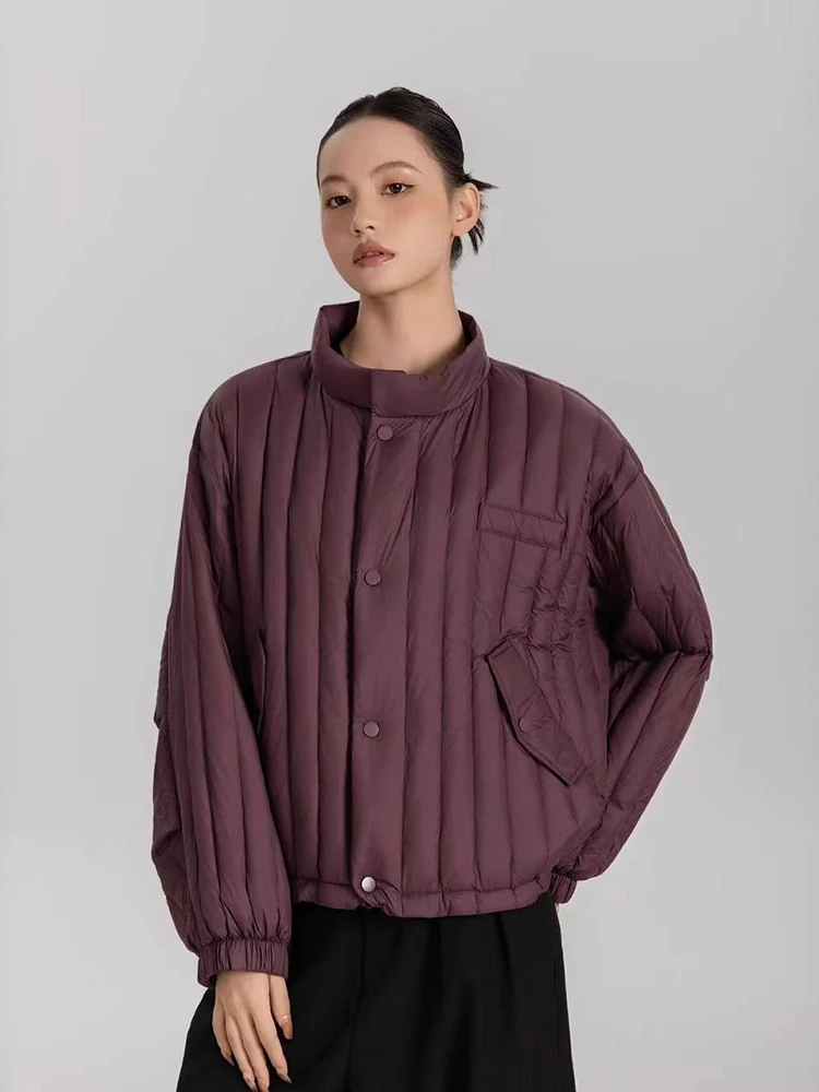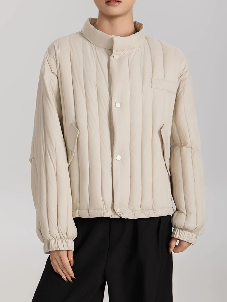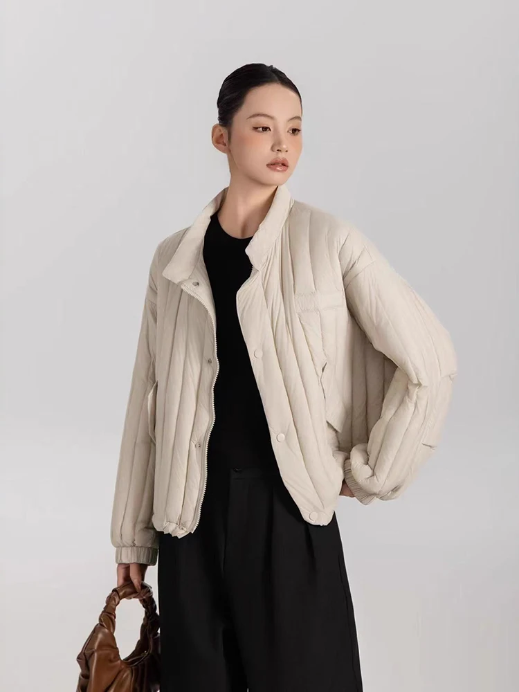Winter White Duck Down Stand Collar Down Jacket Women Vertical Stripes Vertical Stripes Warm Jacket Female Quilted Parka Outwear