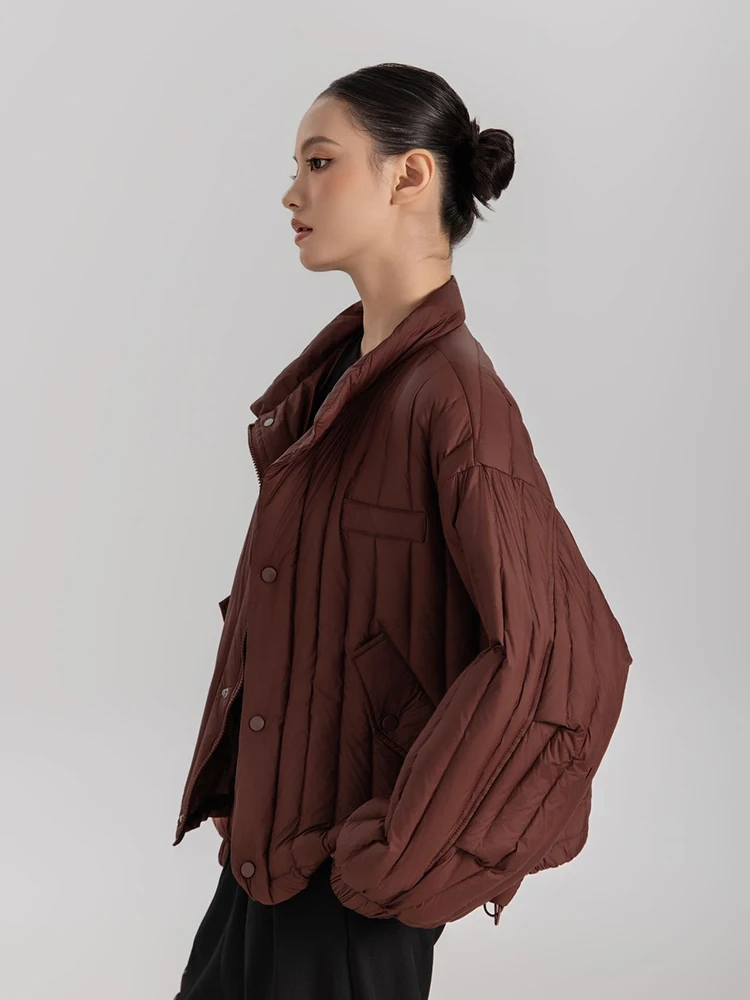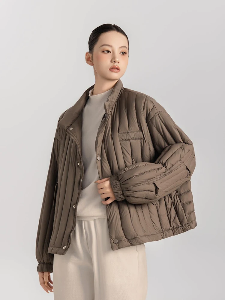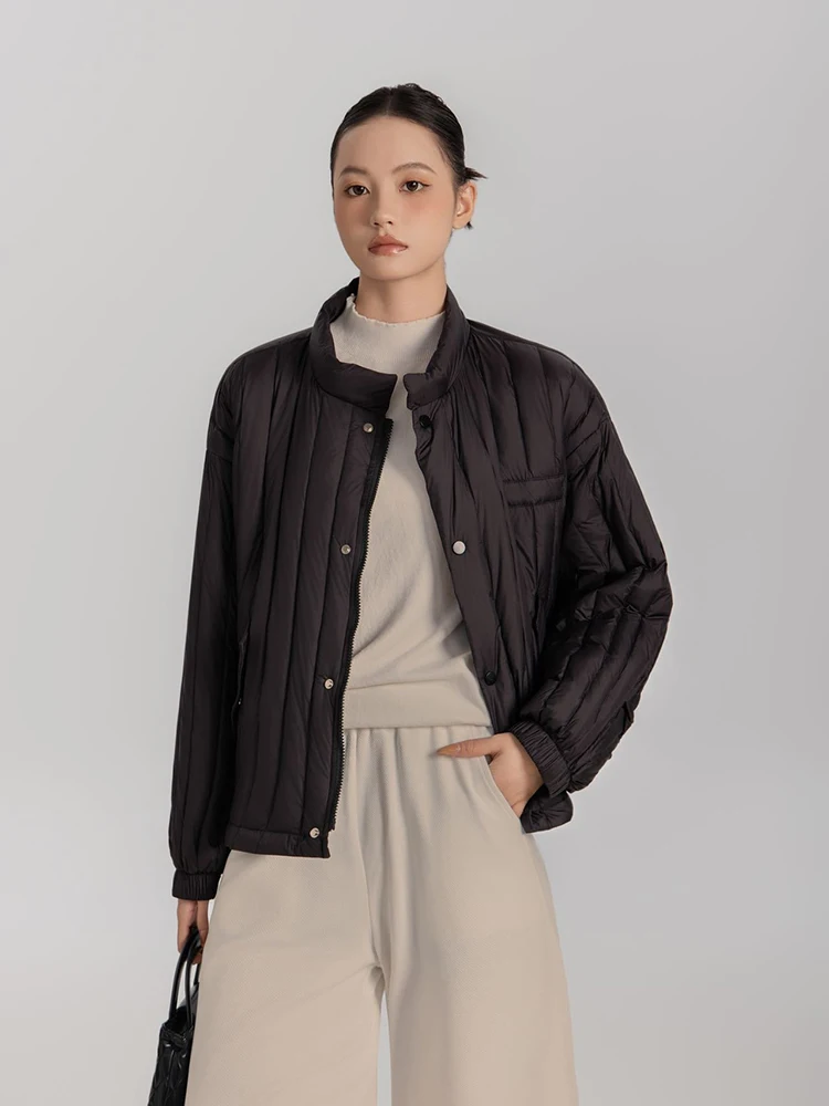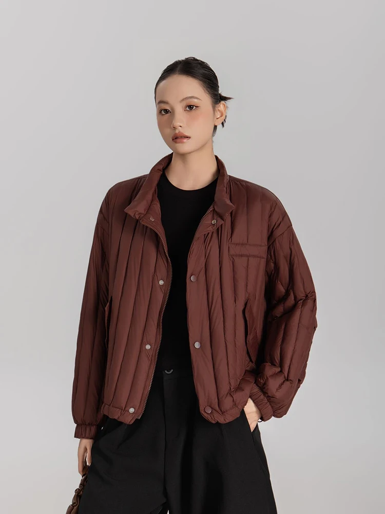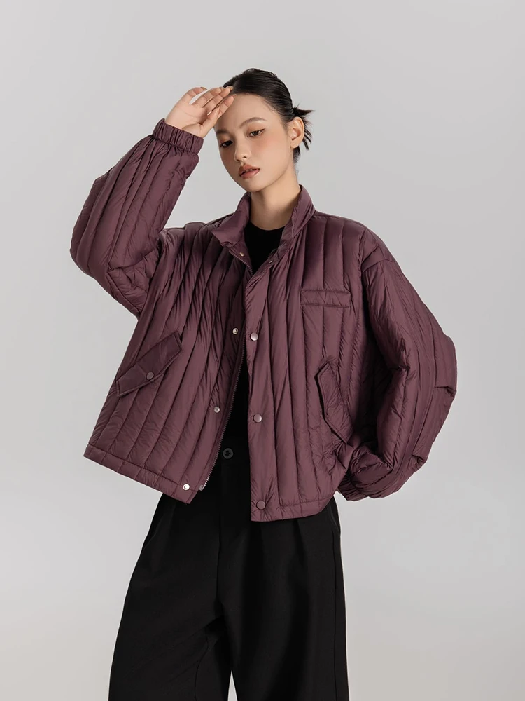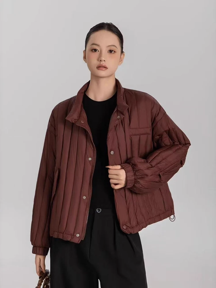 Winter White Duck Down Stand Collar Down Jacket Women Vertical Stripes Vertical Stripes Warm Jacket Female Quilted Parka Outwear
