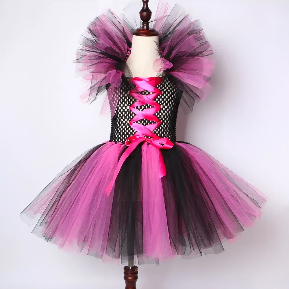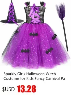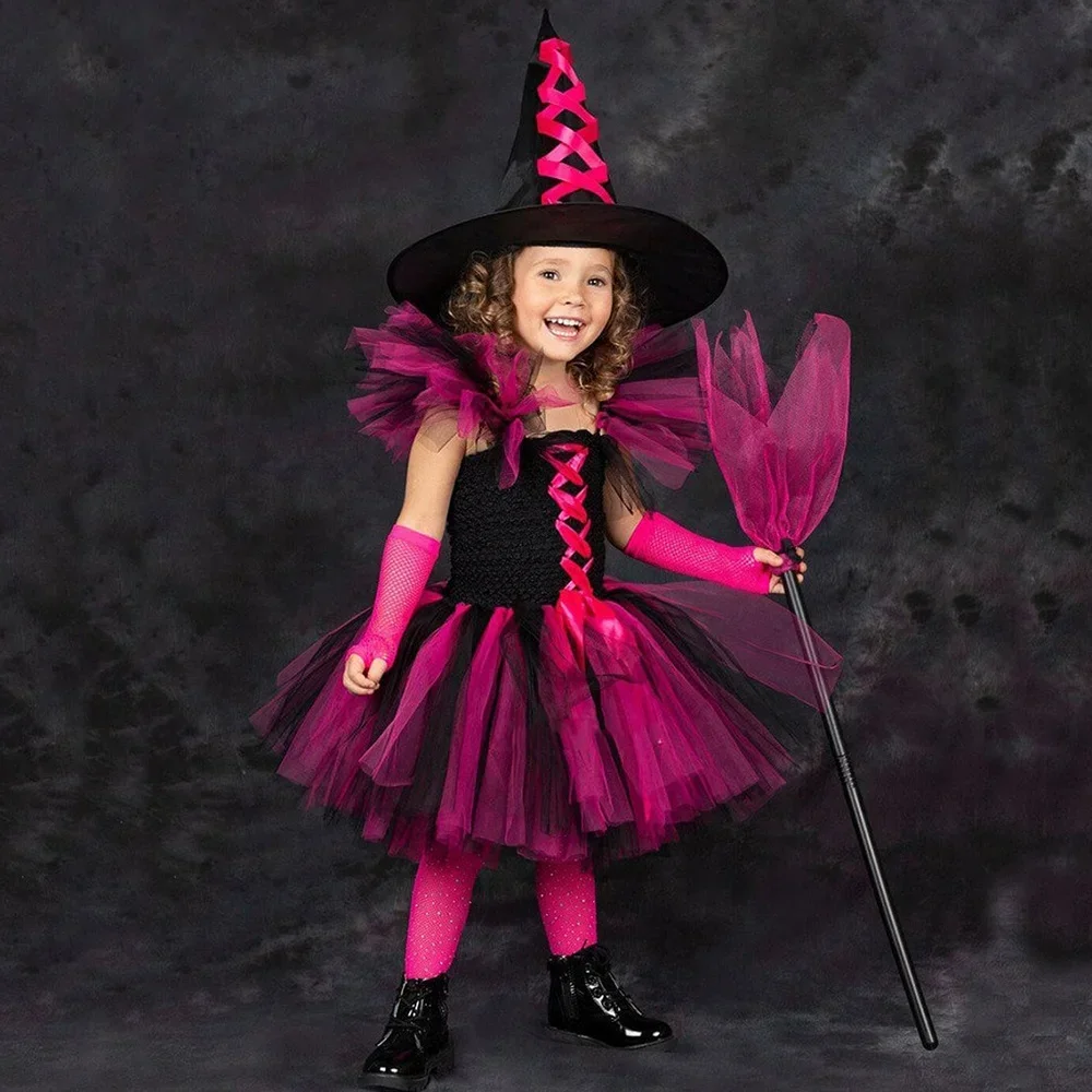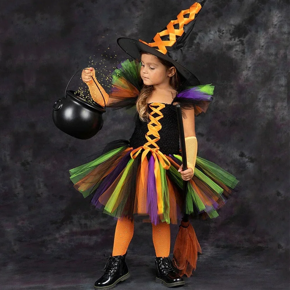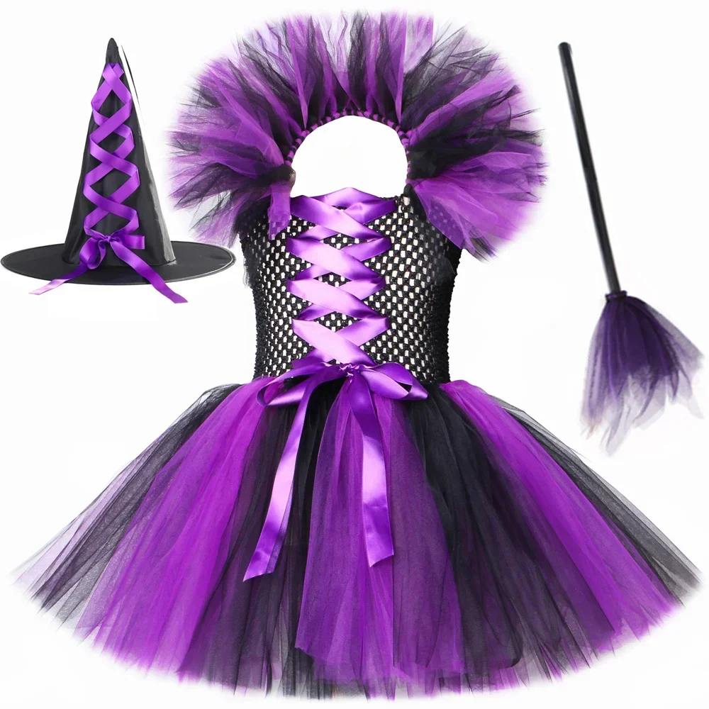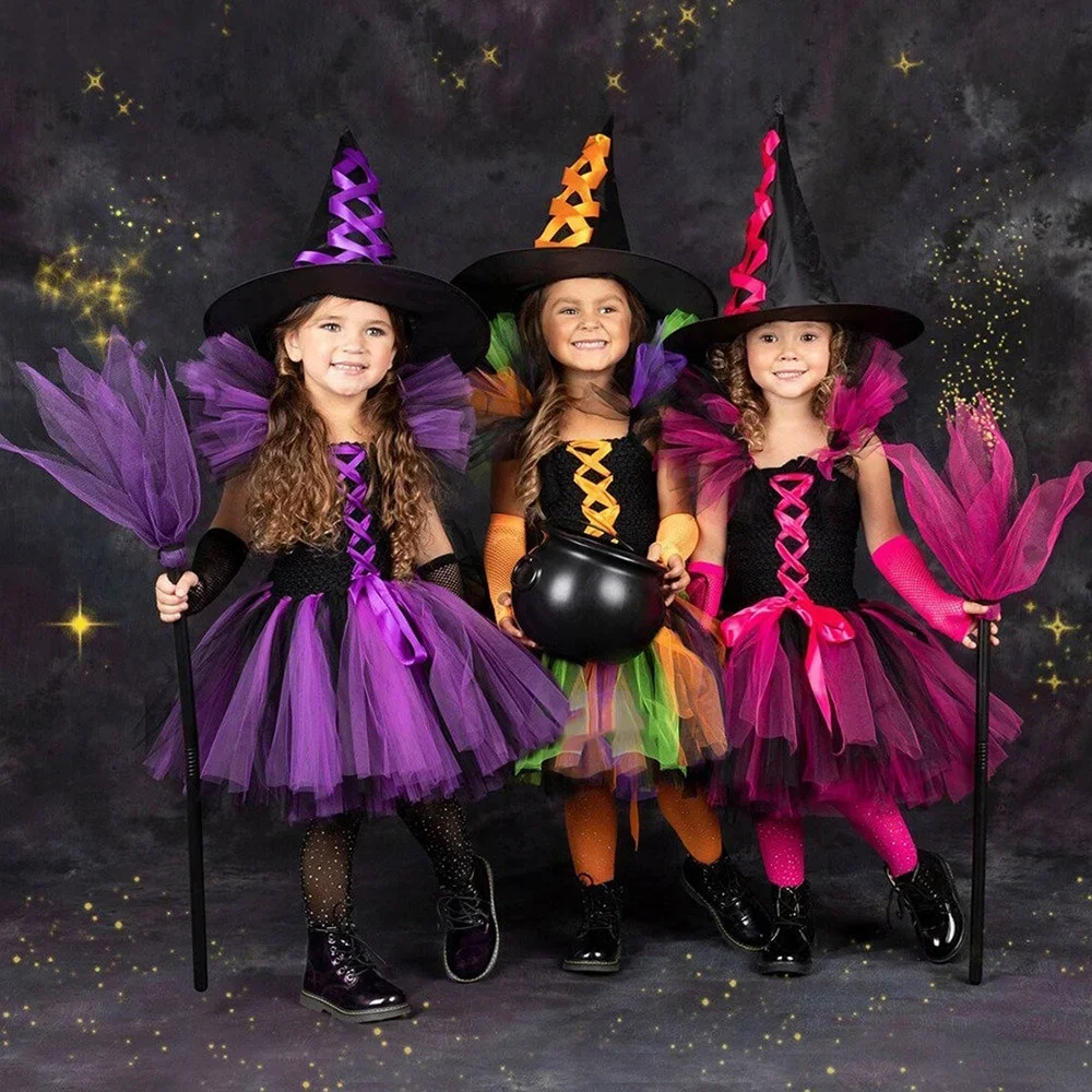 Witch Halloween costume for kids girls fancy tutu dress Vestido hat Brom children Purim carnival party cosplay dress up outfit T