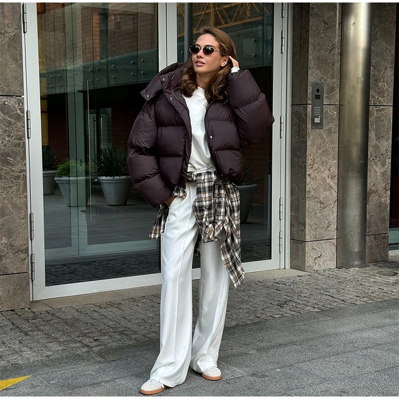 Classic Brown Hue – This elegant cotton coat features a timeless brown shade that adds versatility and sophistication to your autumn wardrobe.