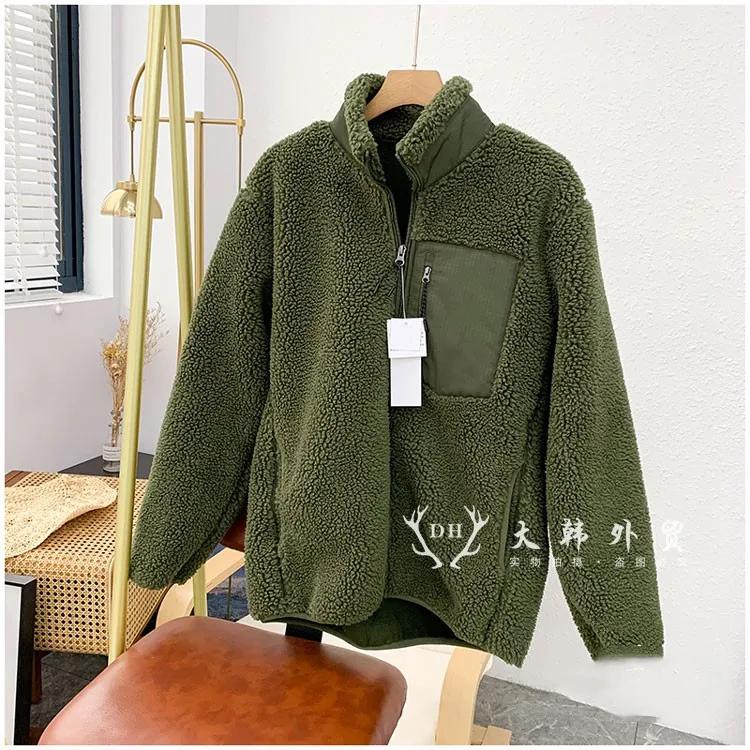 Women Lamb Wool Coats Jackets Stand Collar Zipper Coat Thick Warm Y2k Streetwear Jacket Work Outerwear Autumn Winter 2025