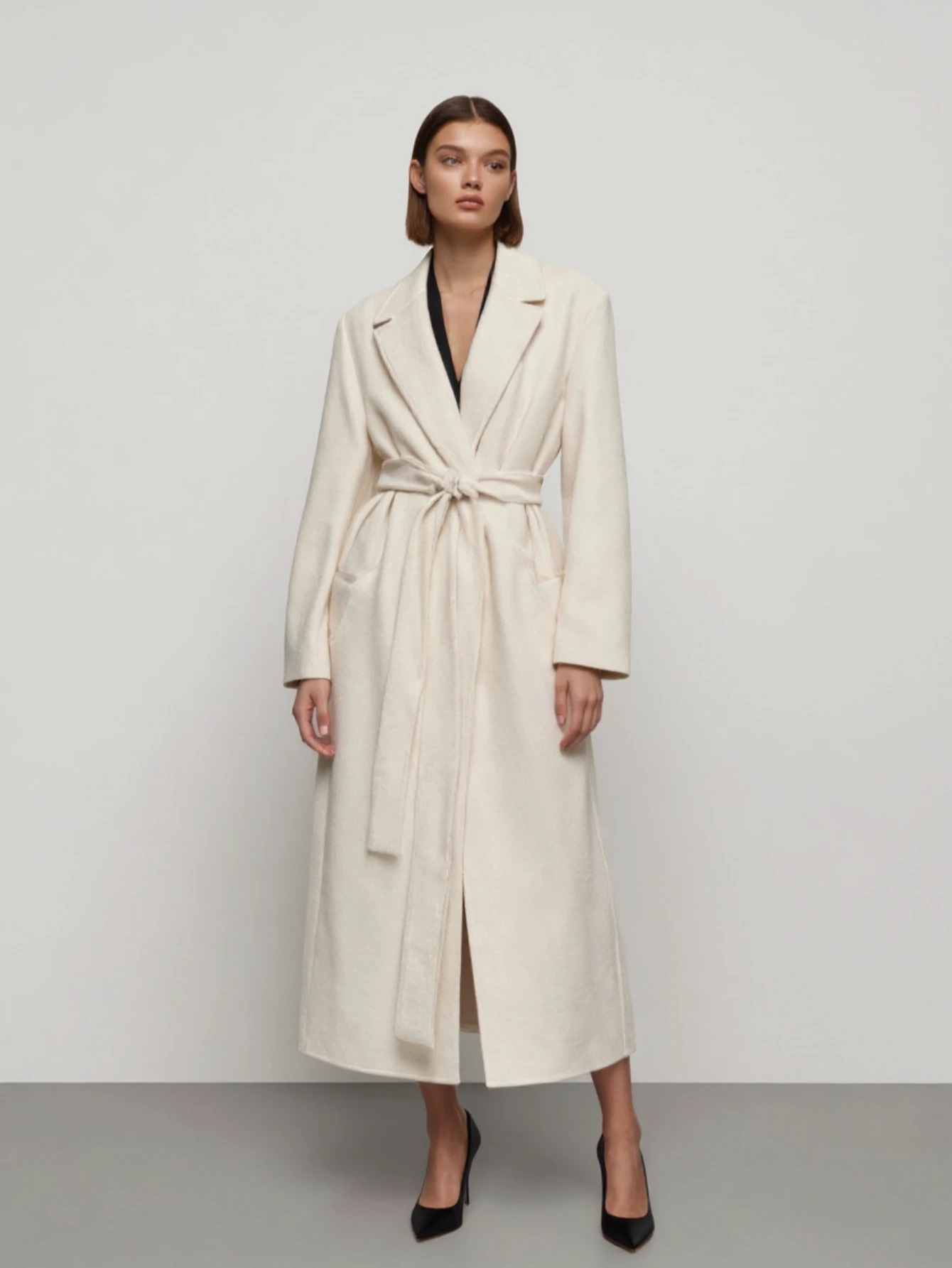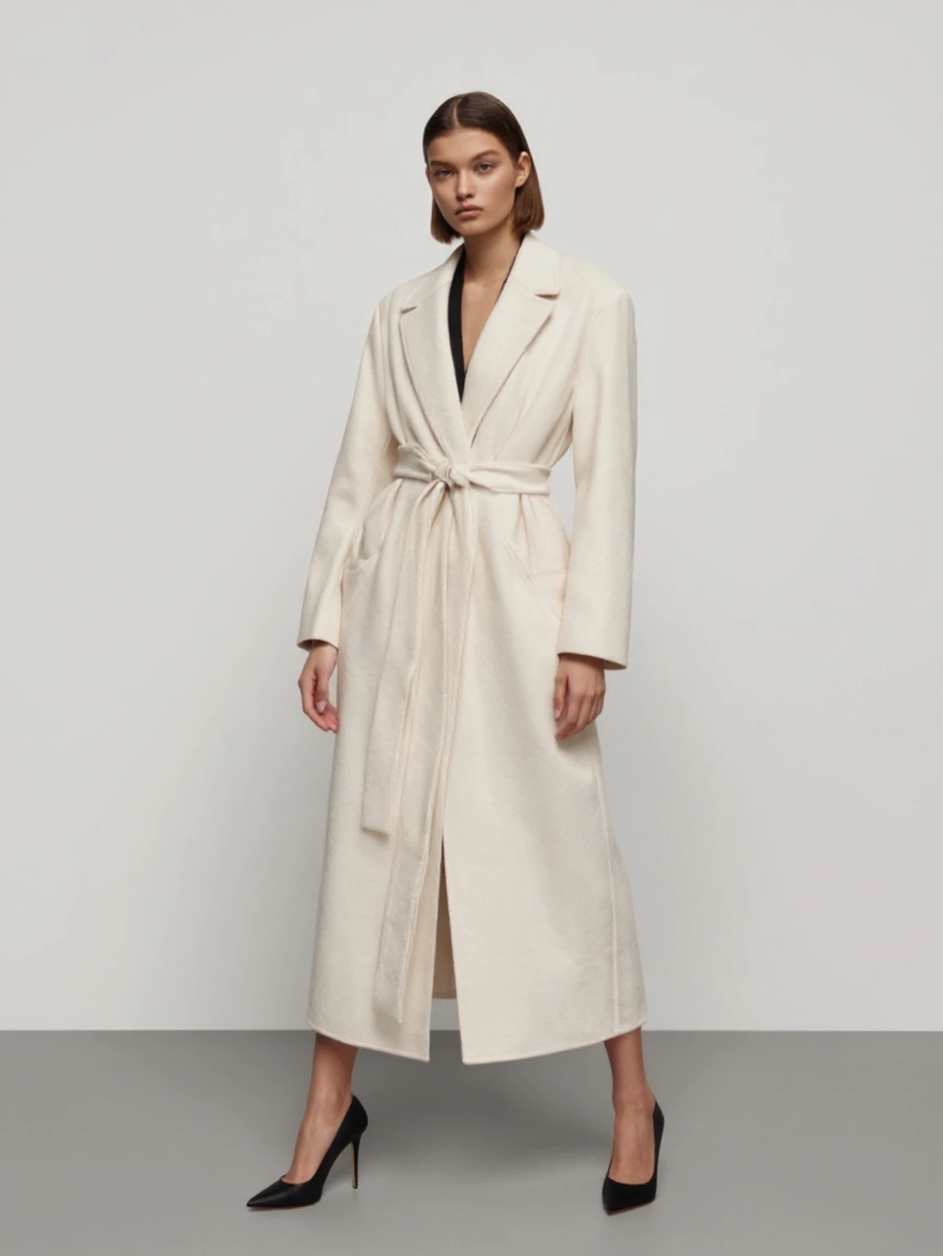 Women's Autumn Winter Coats Casual Korean Solid Color Sashes Long Sleeve Lapel Long Office Lady Coats