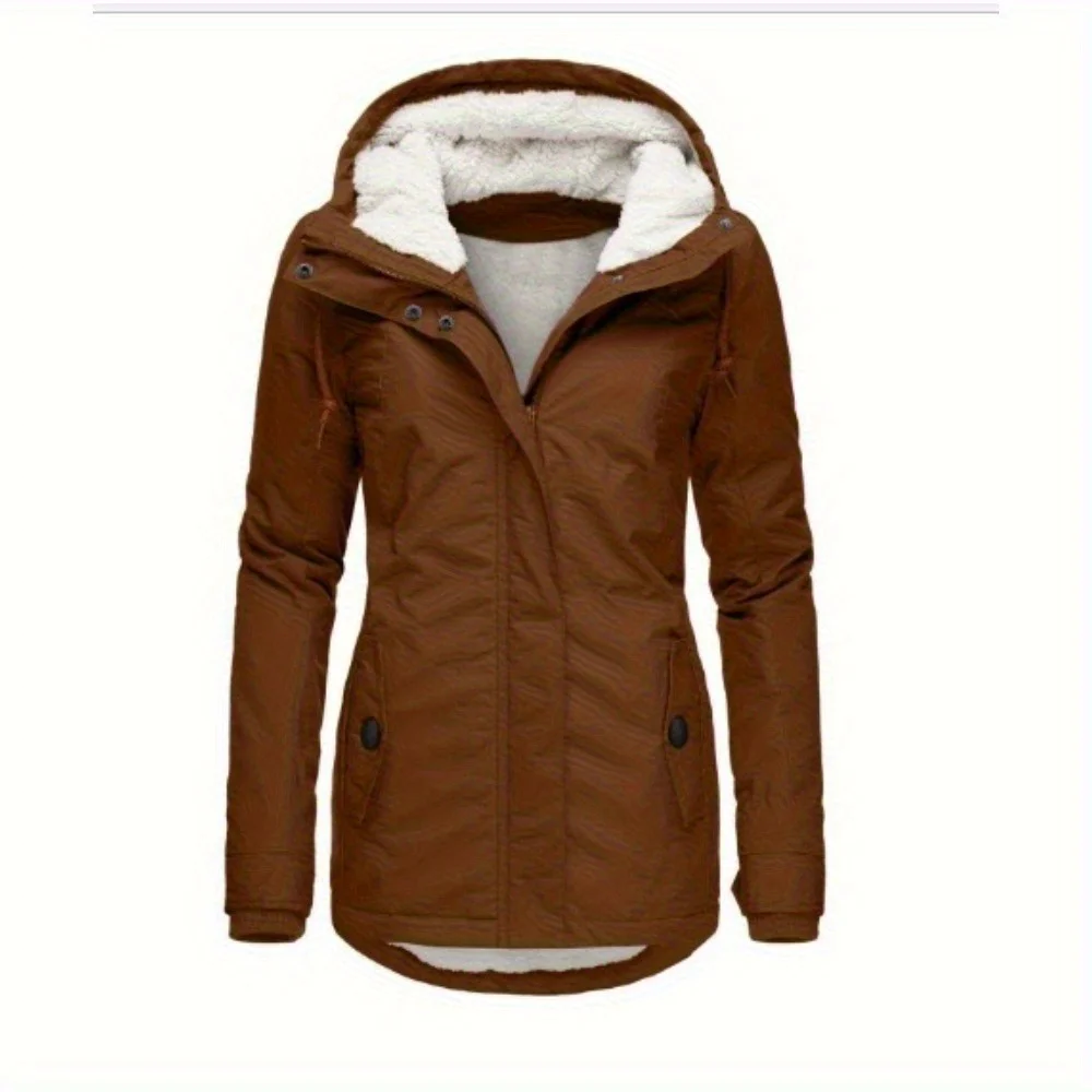 Women's Fashion Solid Color Hooded Long Sleeve Pocket Zipper Fleece Warm Cotton Jacket Women's Costume Accessories Renaissance