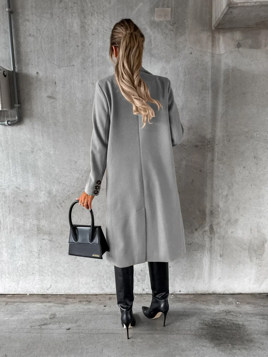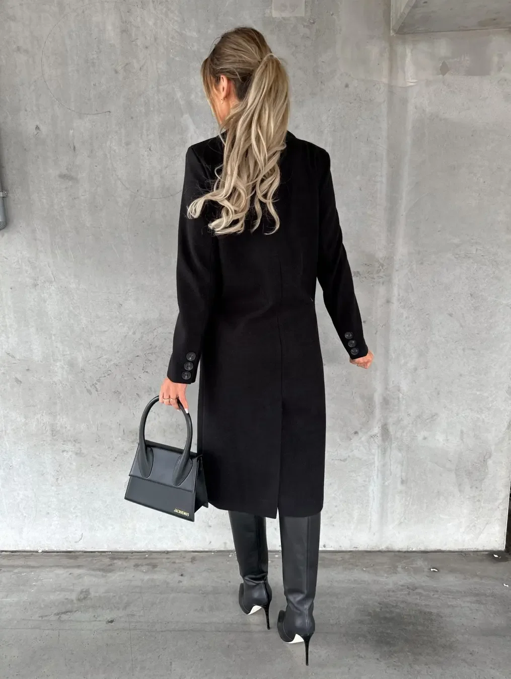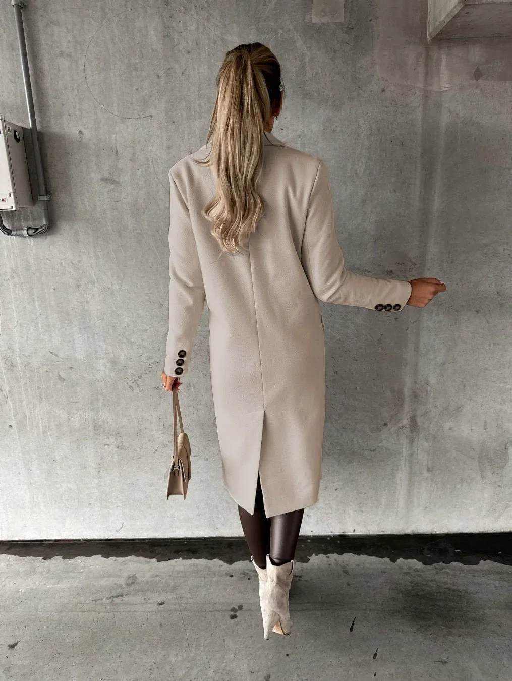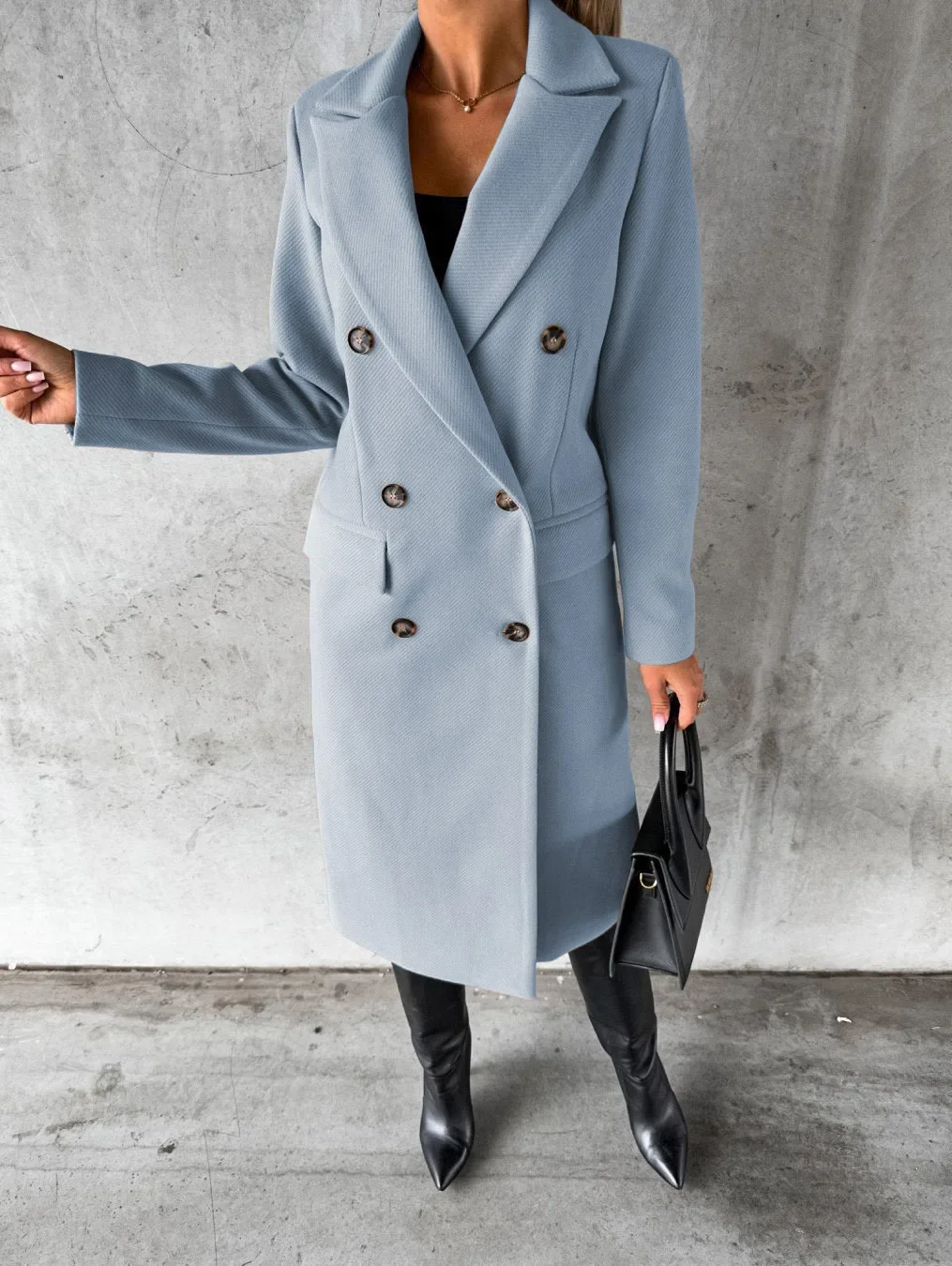 Women’s Classic Double-Breasted Long Coat – Wool-Look, Smart & Versatile