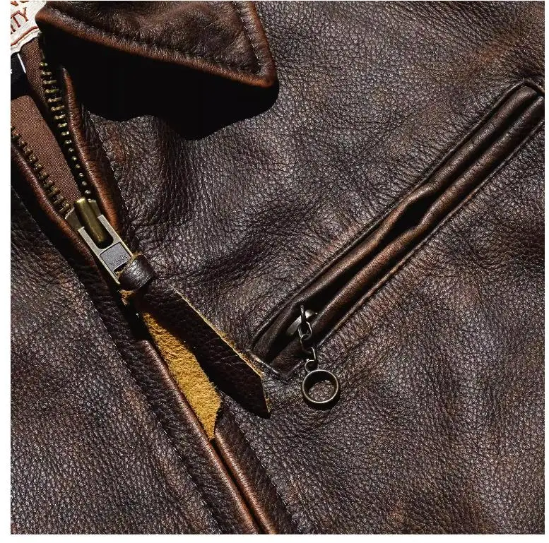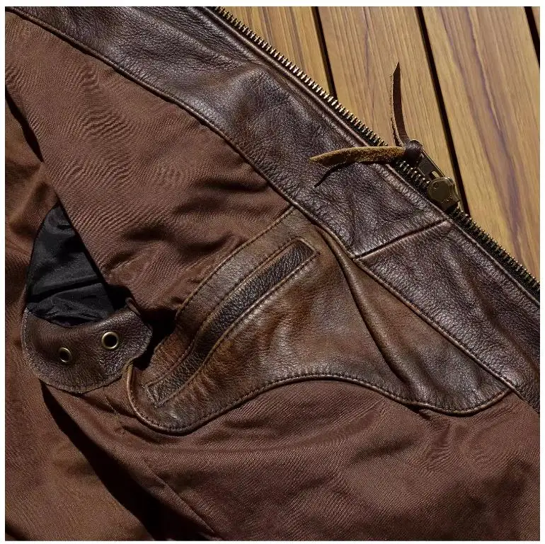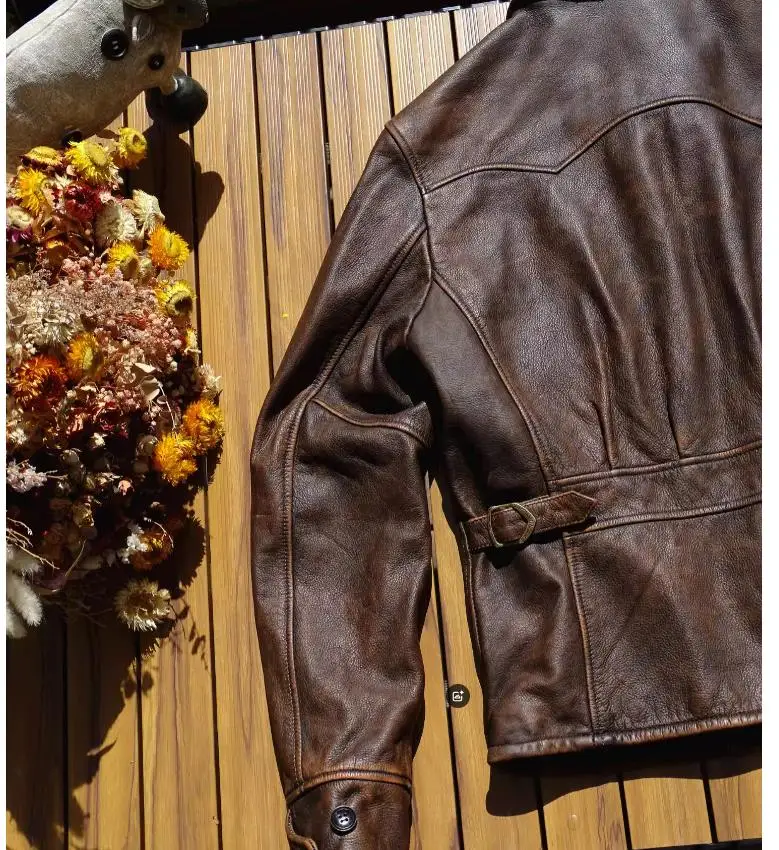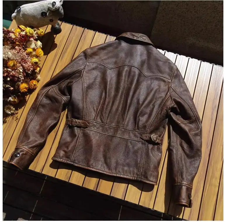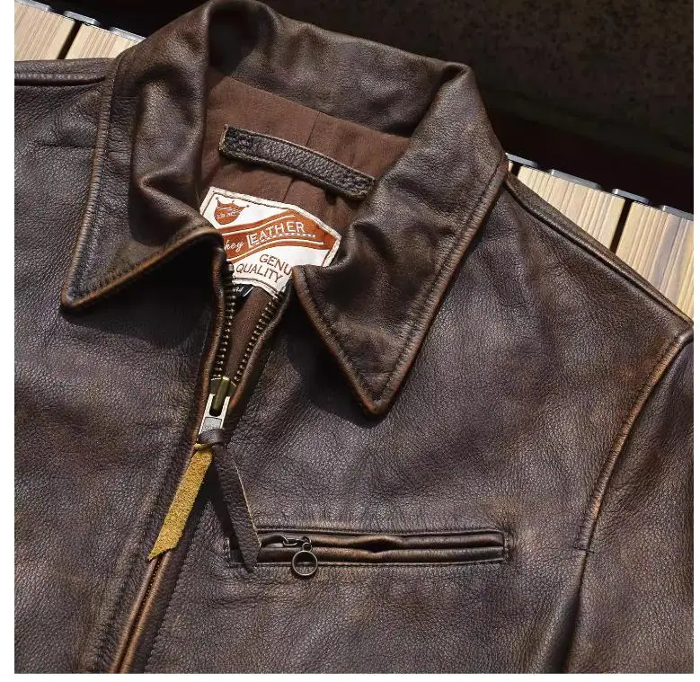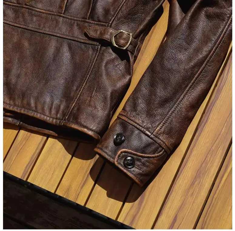 YR!Wholesales.Retro 1930 quality natural cowhide jacket.Vintage brown genuine leather coat.Slim fit.Classic Rider leather cloth