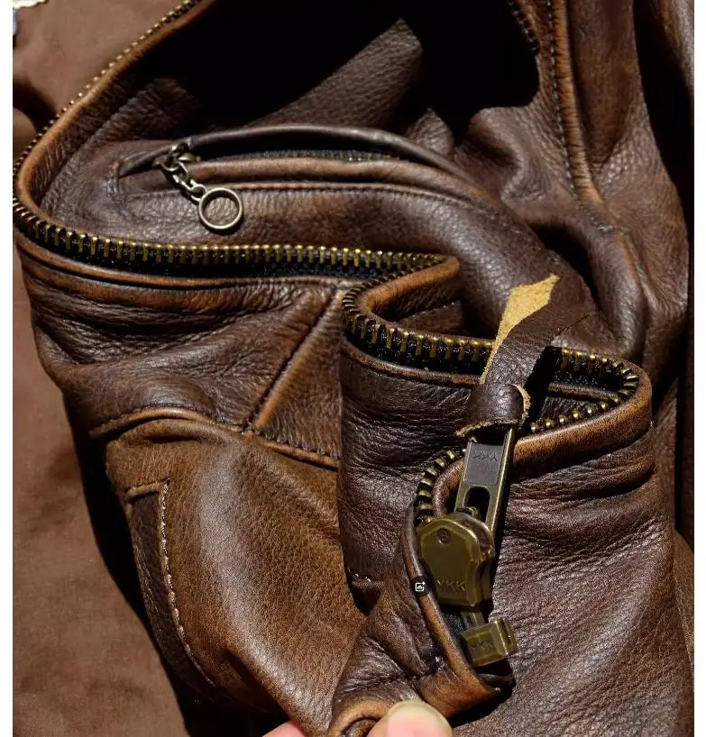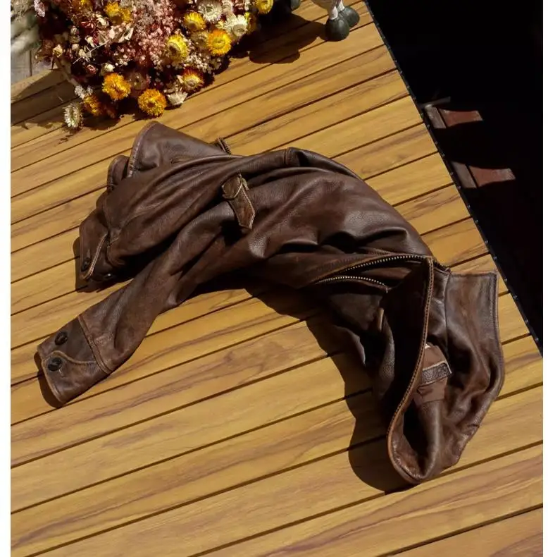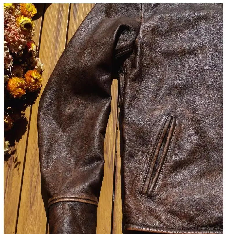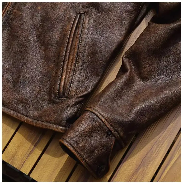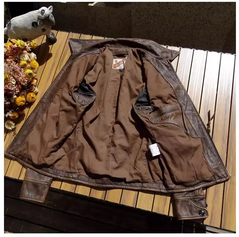 YR!Wholesales.Retro 1930 quality natural cowhide jacket.Vintage brown genuine leather coat.Slim fit.Classic Rider leather cloth
